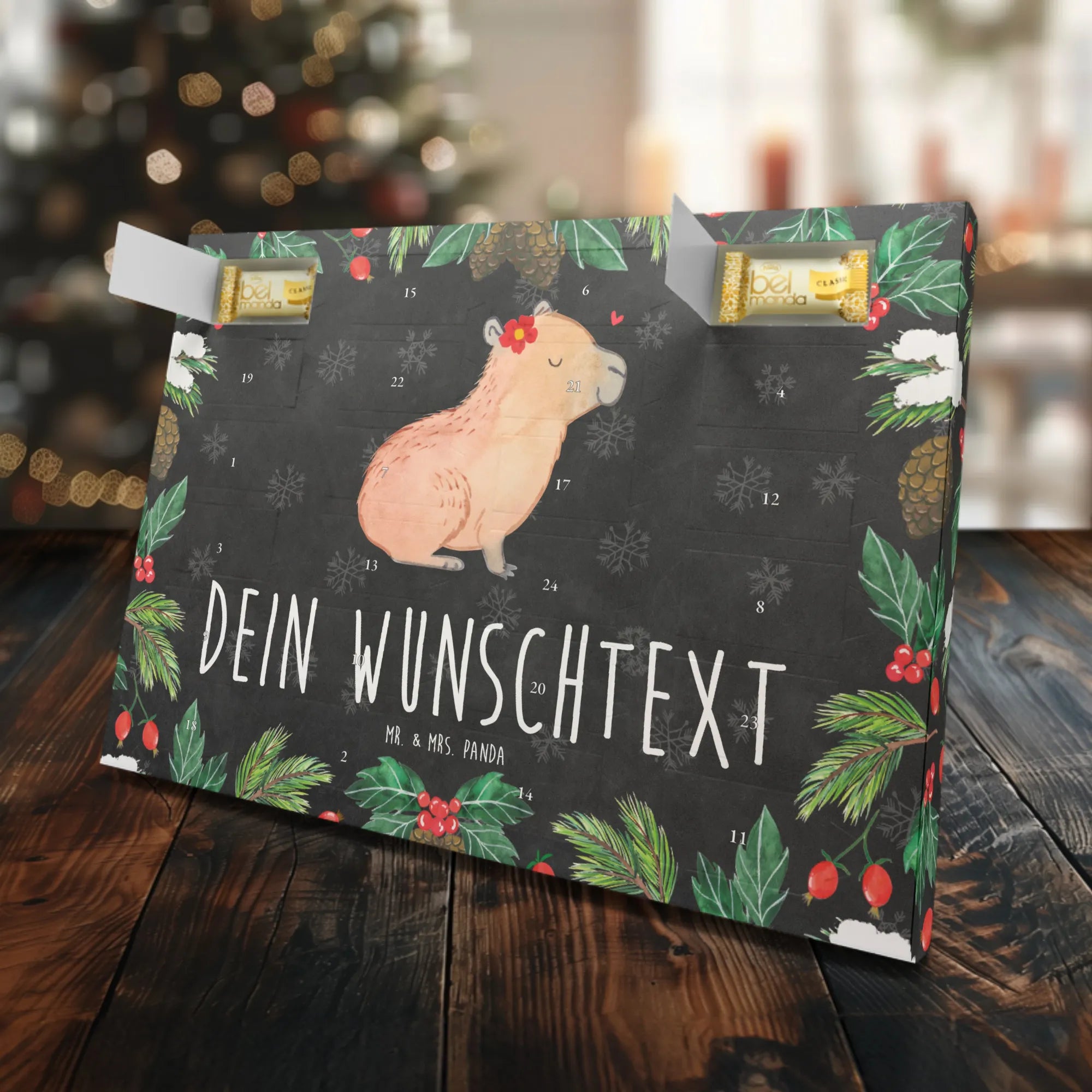 Personalisierter Marzipan Adventskalender Capybara Blume - Schwarz