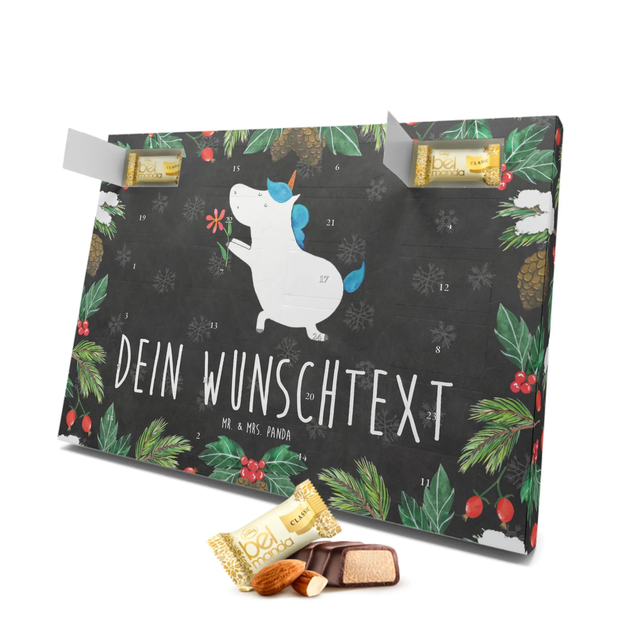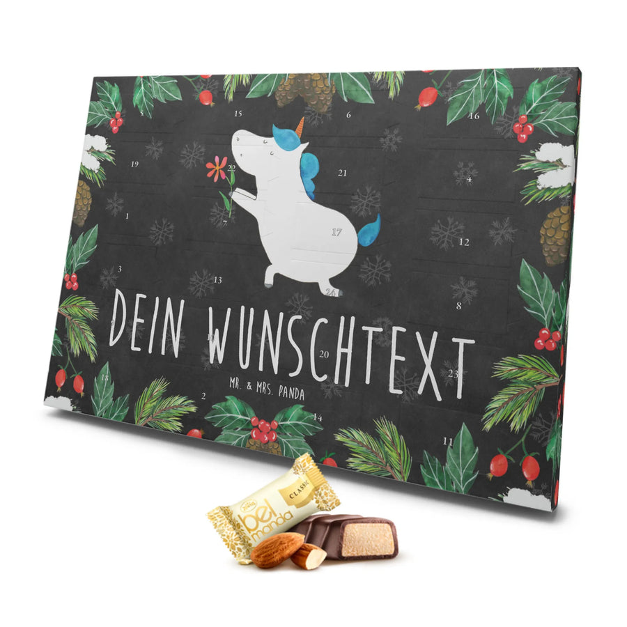 Personalisierter Marzipan Adventskalender Einhorn Blume - Schwarz
