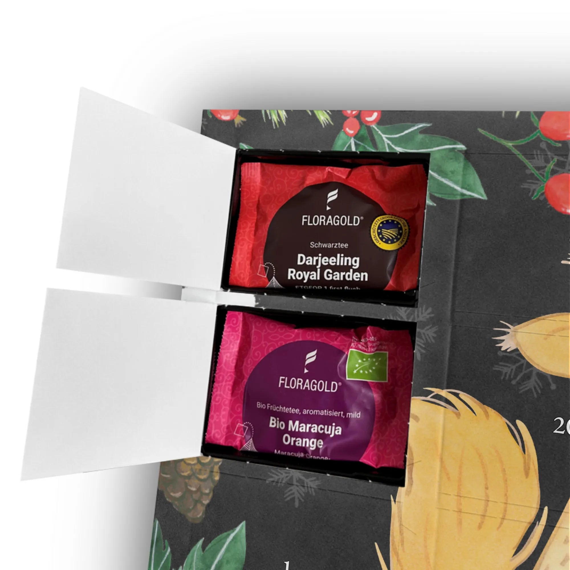Mit 24 einzeln verpackten hochwertigen Teesorten im Pyramidenbeutel bietet dieser Adventskalender eine bunte Mischung aus Früchtetee, Schwarztee und Kräutertee. Perfekt geeignet für Teeliebhaber und diejenigen, die sich gerne zum Spielen versammeln. Jeder Tag bringt eine neue Überraschung und lädt dazu ein, den Abend mit Freunden oder der Familie bei einer Runde Gesellschaftsspiele zu genießen.