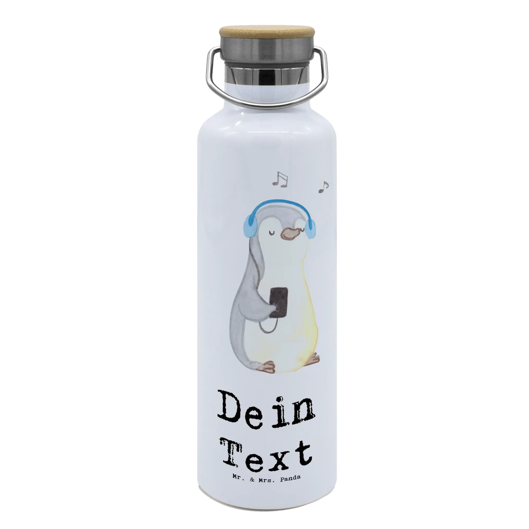 Personalizowana butelka na wodę Pingwin Słuchać muzyki