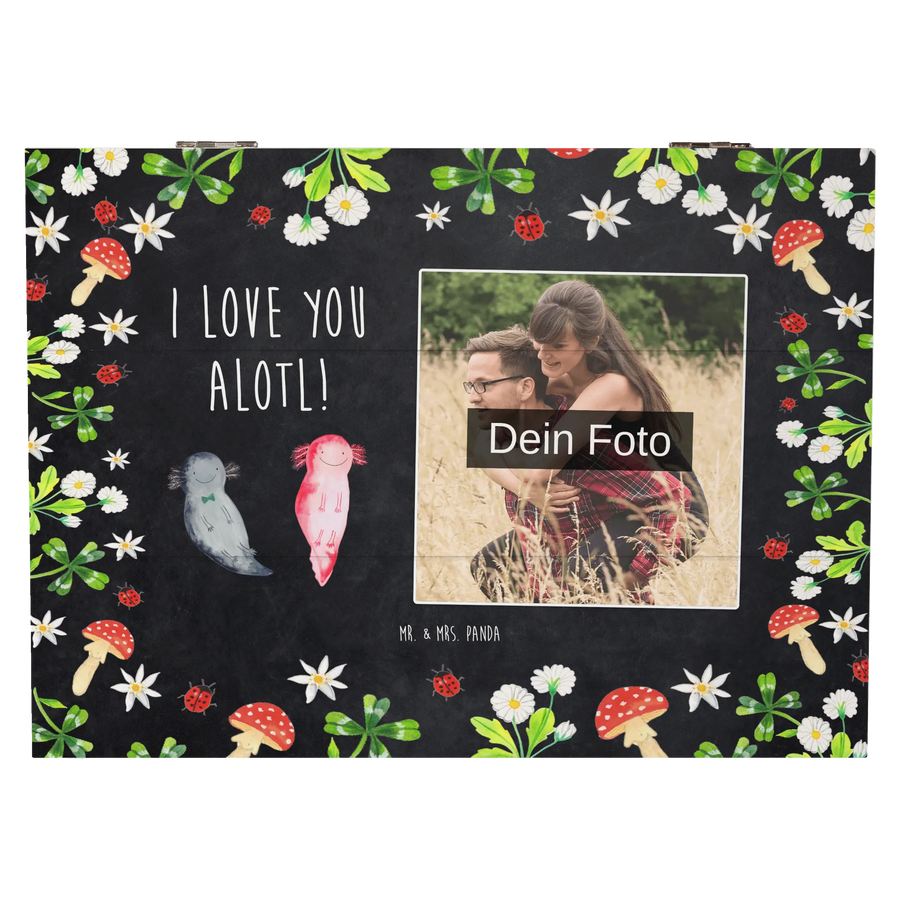 Personalisierte Foto Holzkiste Axolotl Liebe - 25 x 18 cm - Kreidetafel