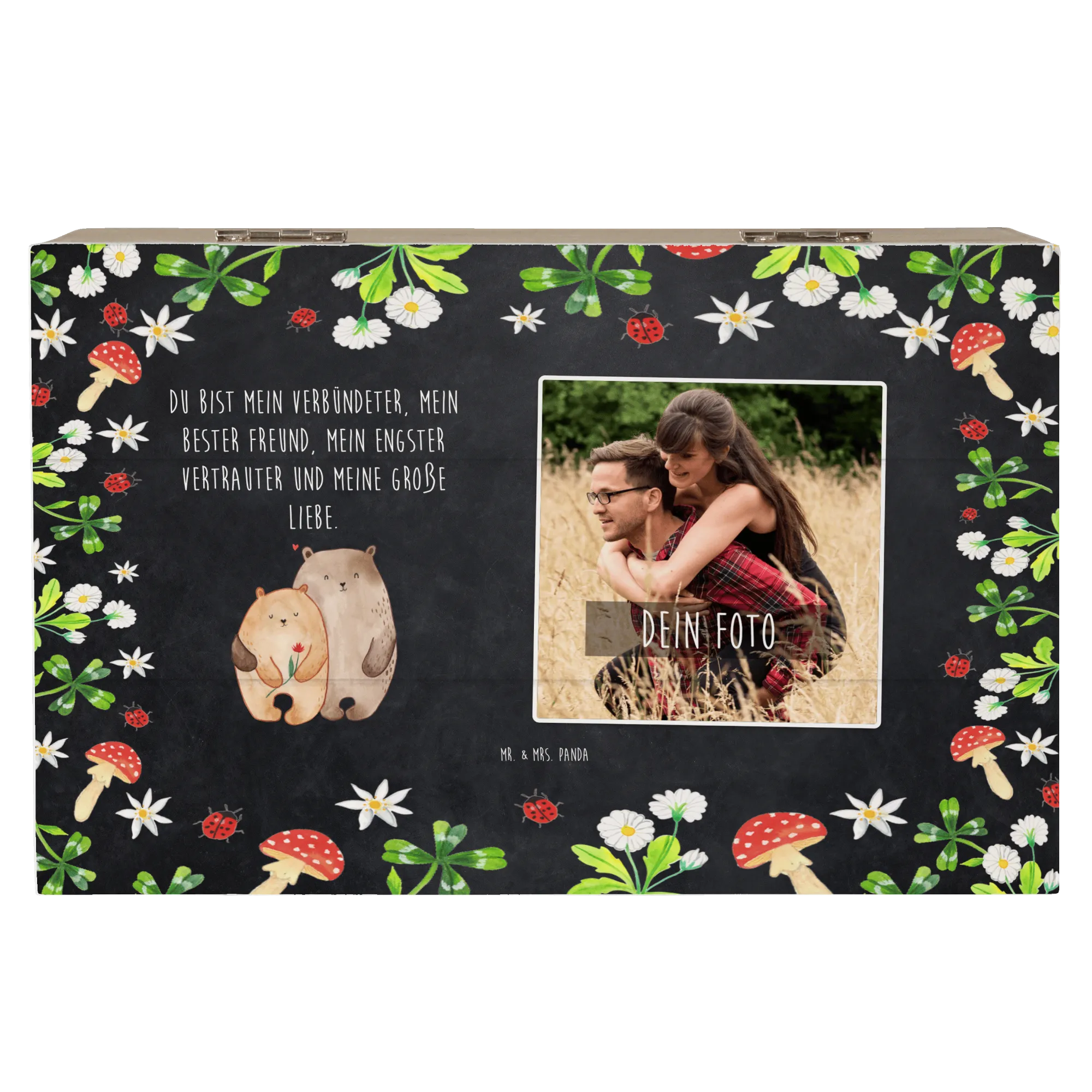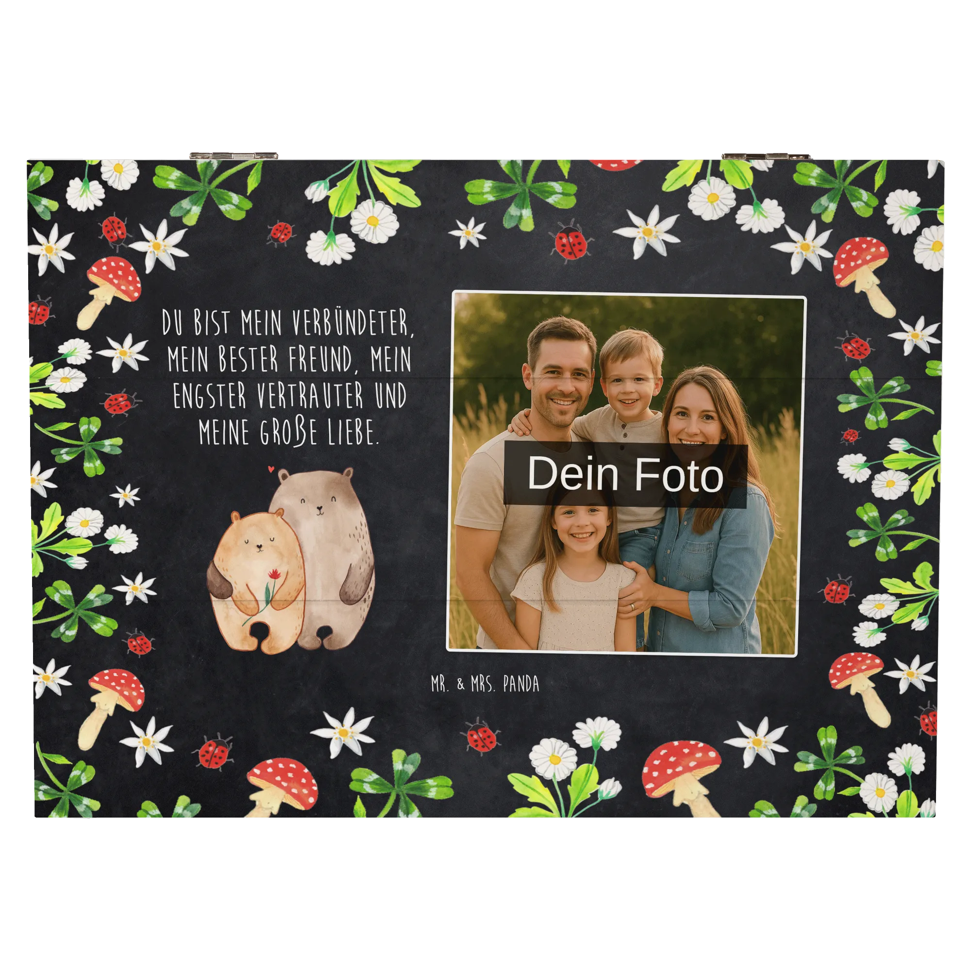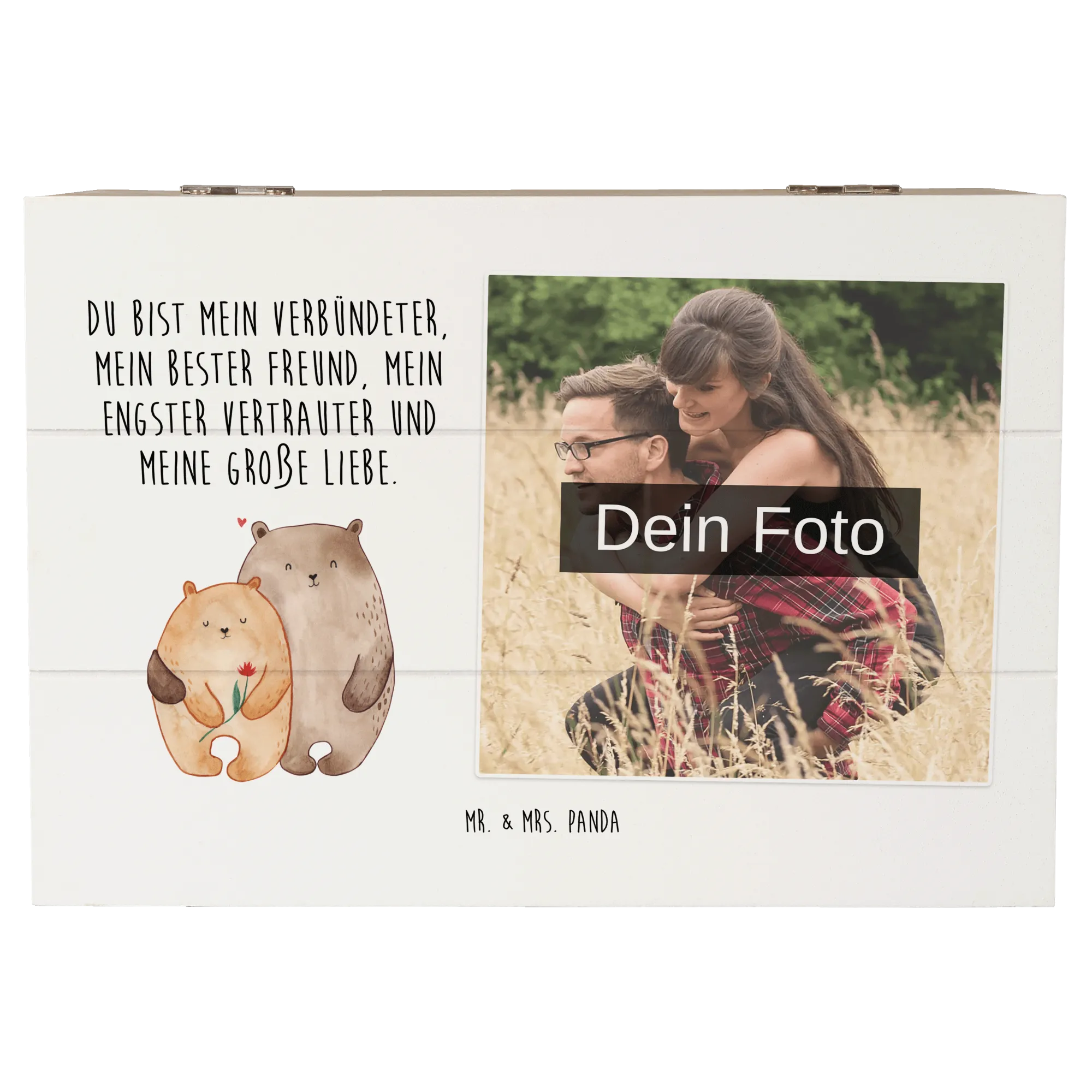 Die perfekte Möglichkeit, deine schönsten Erinnerungen zu bewahren, ist die personalisierte Foto Holzkiste von Mr. & Mrs. Panda! Mit einem traumhaften Motiv von verliebten Bären und dem inspirierenden Spruch 'Du bist mein Verbündeter, Mein bester Freund, mein engster Vertrauter und meine große Liebe.' verkörpert diese Kiste die tiefen Emotionen der Liebe.