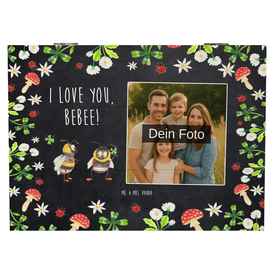 Bist du auf der Suche nach einem ganz besonderen Geschenk für deine Liebsten? Dann ist die personalisiertes Foto Holzkiste mit dem zauberhaften Motiv "Bienen Paar" von Mr. & Mrs. Panda genau das Richtige für dich!