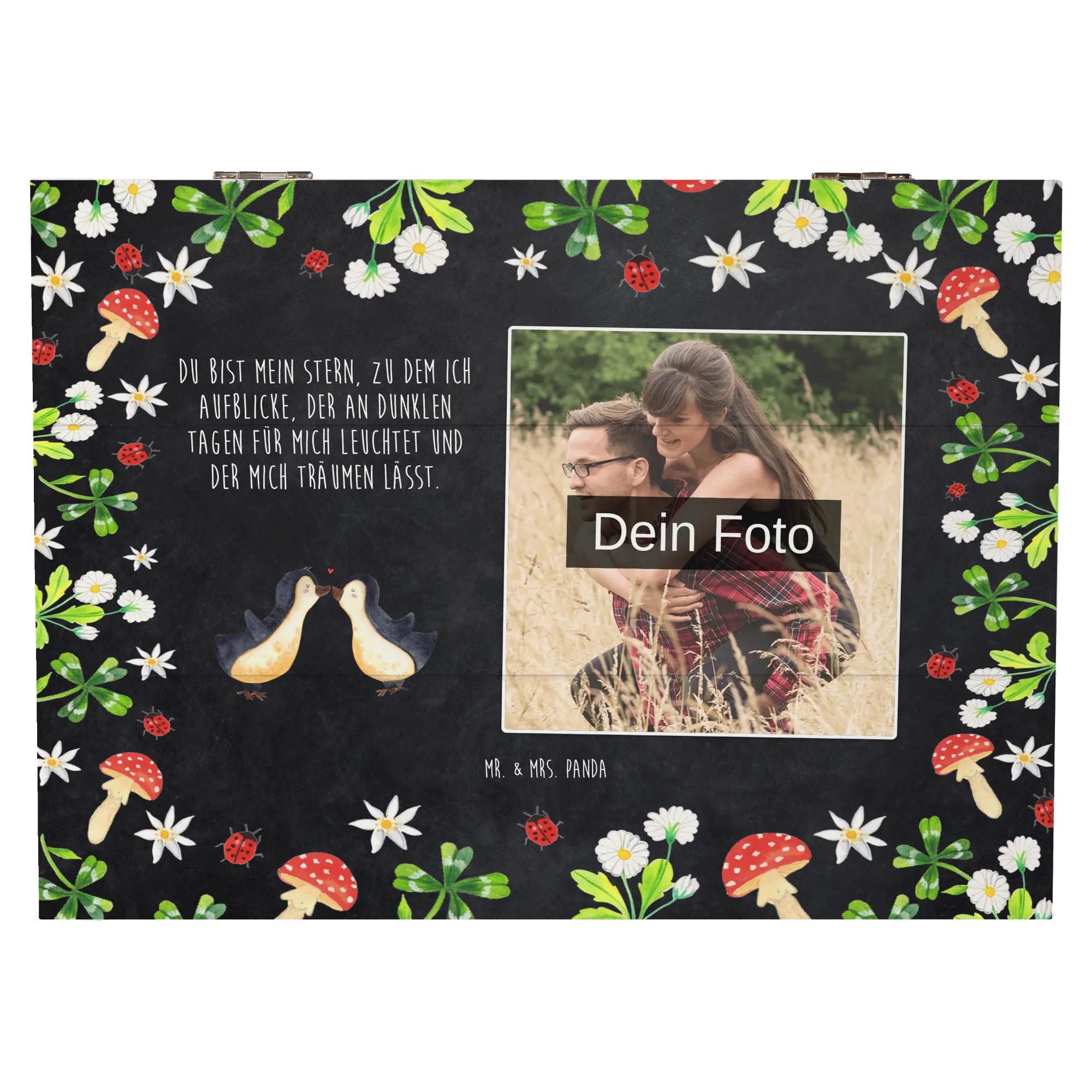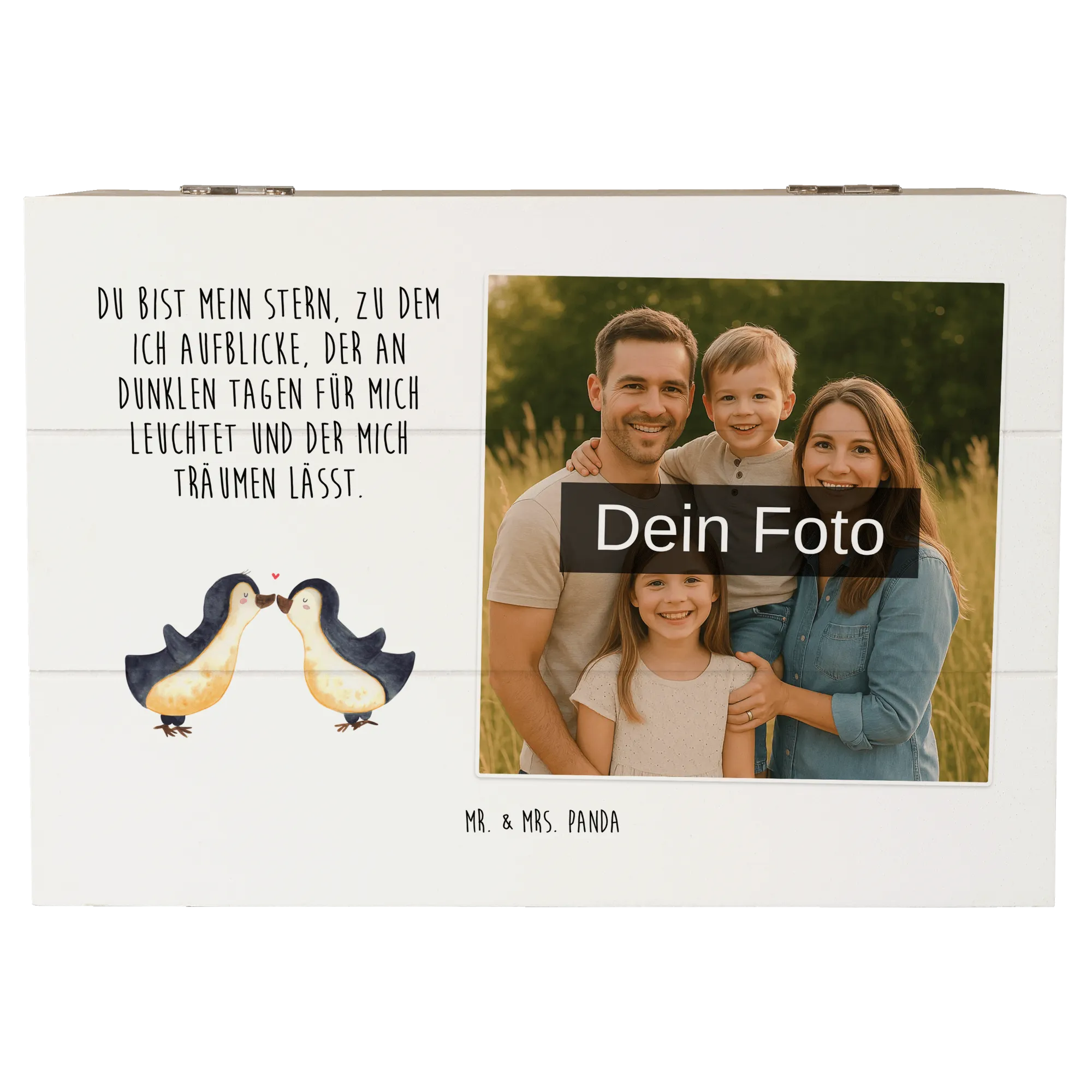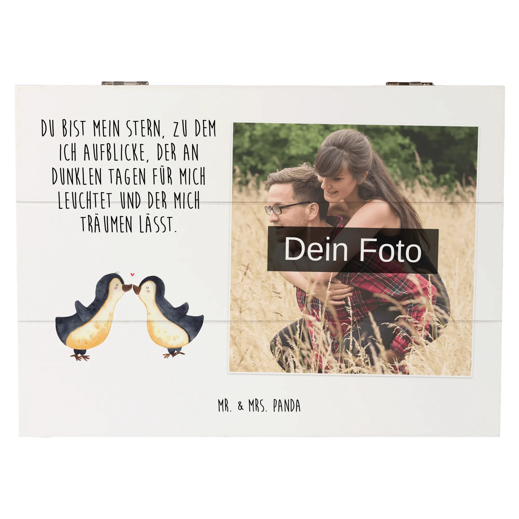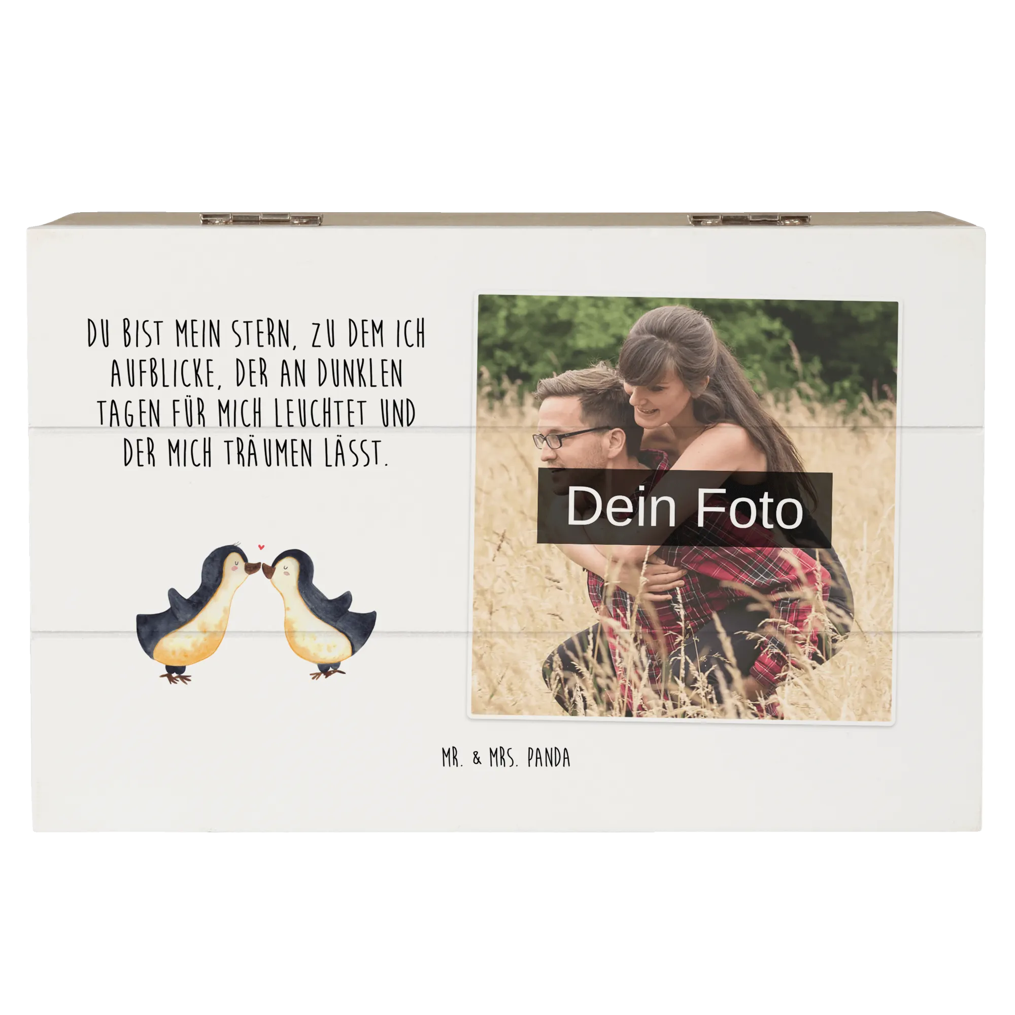 Entdecke die zauberhafte, personalisierte Foto Holzkiste von Mr. & Mrs. Panda, die perfekt zu jedem Liebesbeweis passt! Diese wunderschöne Kiste mit dem Motif Pinguin Liebe ist nicht nur ein praktischer Aufbewahrungsort für all deine wertvollen Erinnerungen, sondern auch ein einmaliges Geschenk für Verliebte.