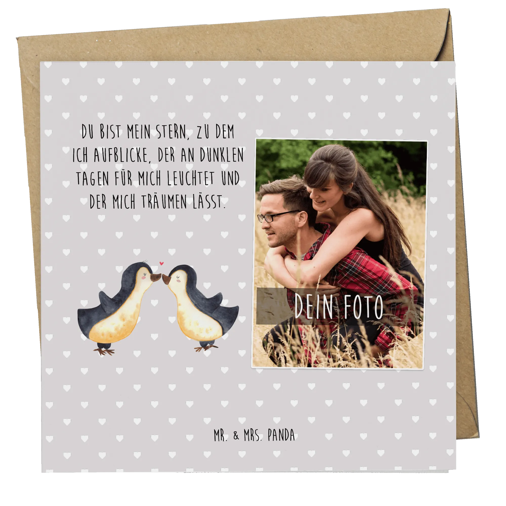 Die personalisierte Foto Deluxe Karte Pinguin Liebe von Mr. & Mrs. Panda ist das perfekte Geschenk für Verliebte! Sie bringt nicht nur ein Lächeln auf die Lippen, sondern ist auch ein wunderschöner Liebesbeweis. Die süßen Pinguine auf der Karte symbolisieren Zuneigung und Verbundenheit – egal, ob zum Jahrestag, Hochzeitstag oder einfach nur als liebevolle Überraschung.
