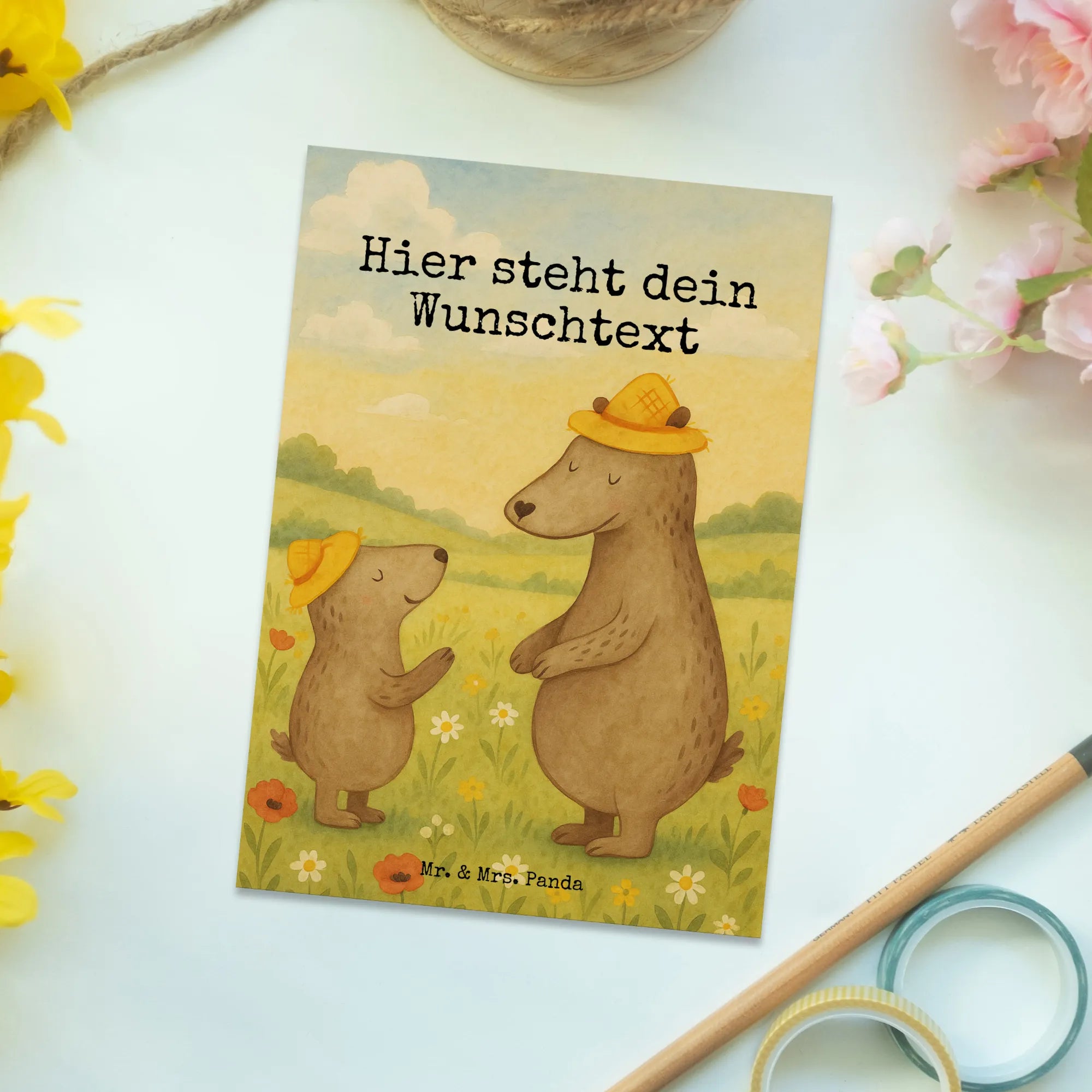 Personalised postcard Niedźwiedzie z kapeluszami Design