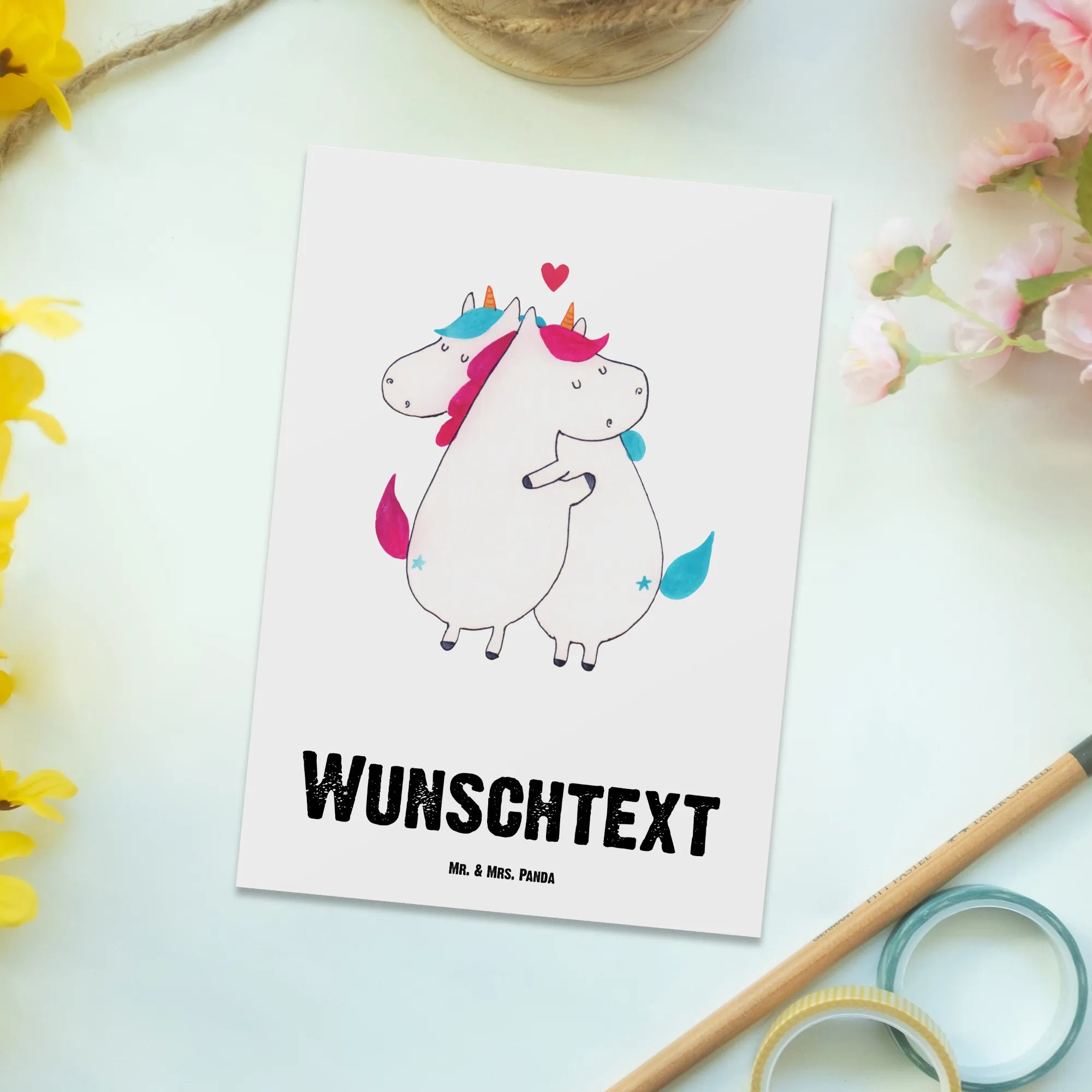 Personalizowana kartka pocztowa jednorożec Wiadomość – Mr. & Mrs. Panda