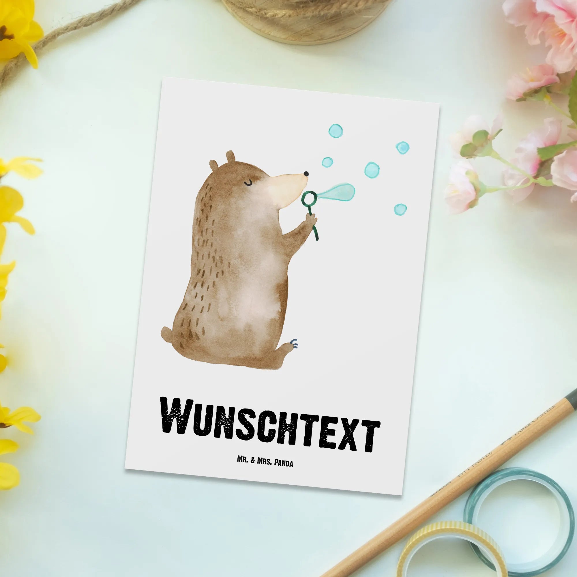 Personalizowana kartka pocztowa niedźwiedź bańki mydlane