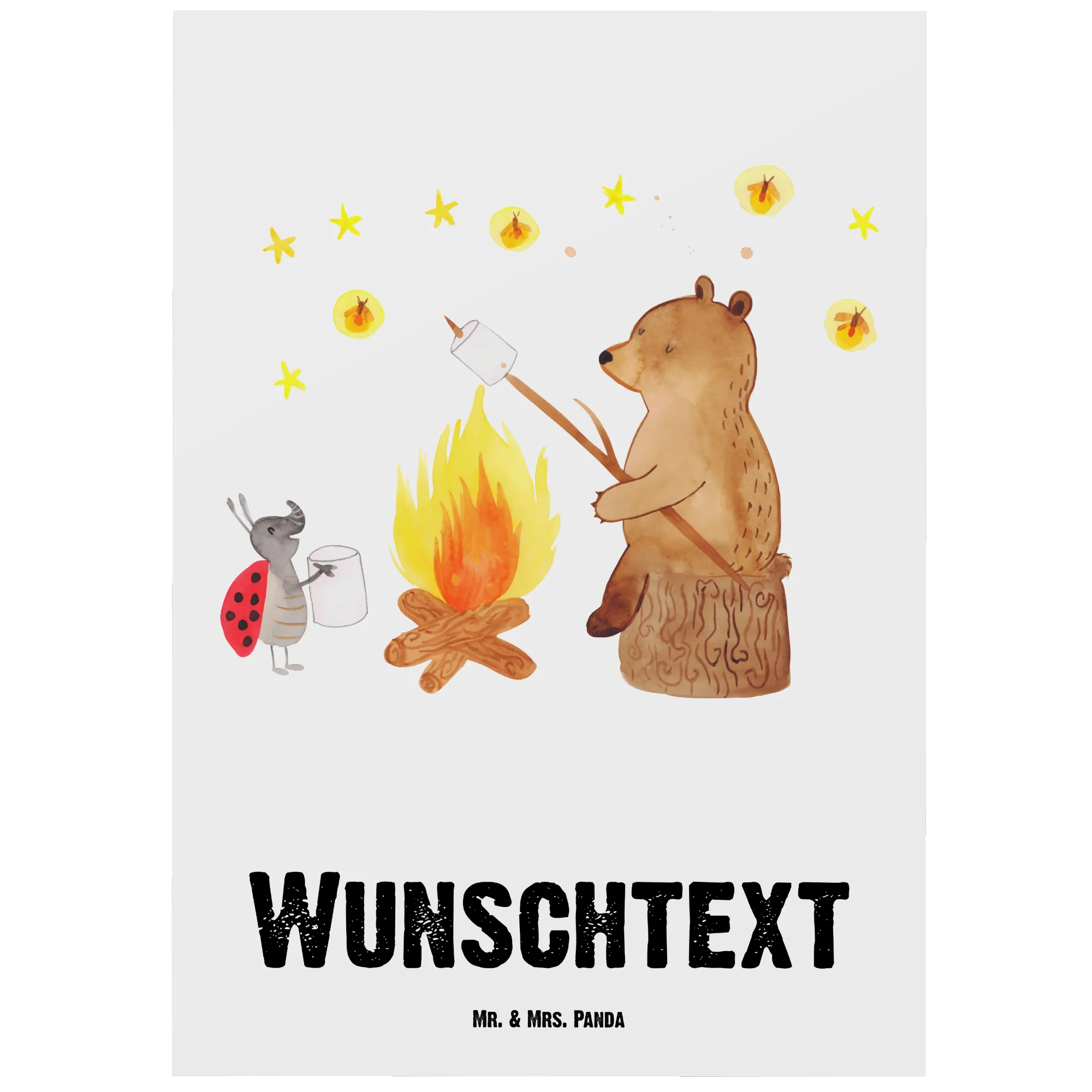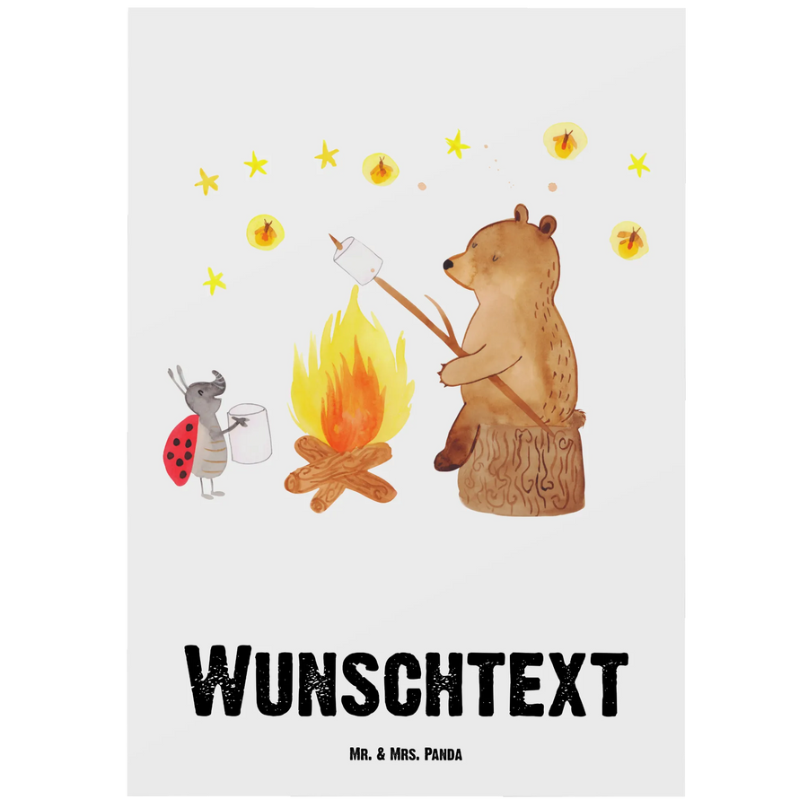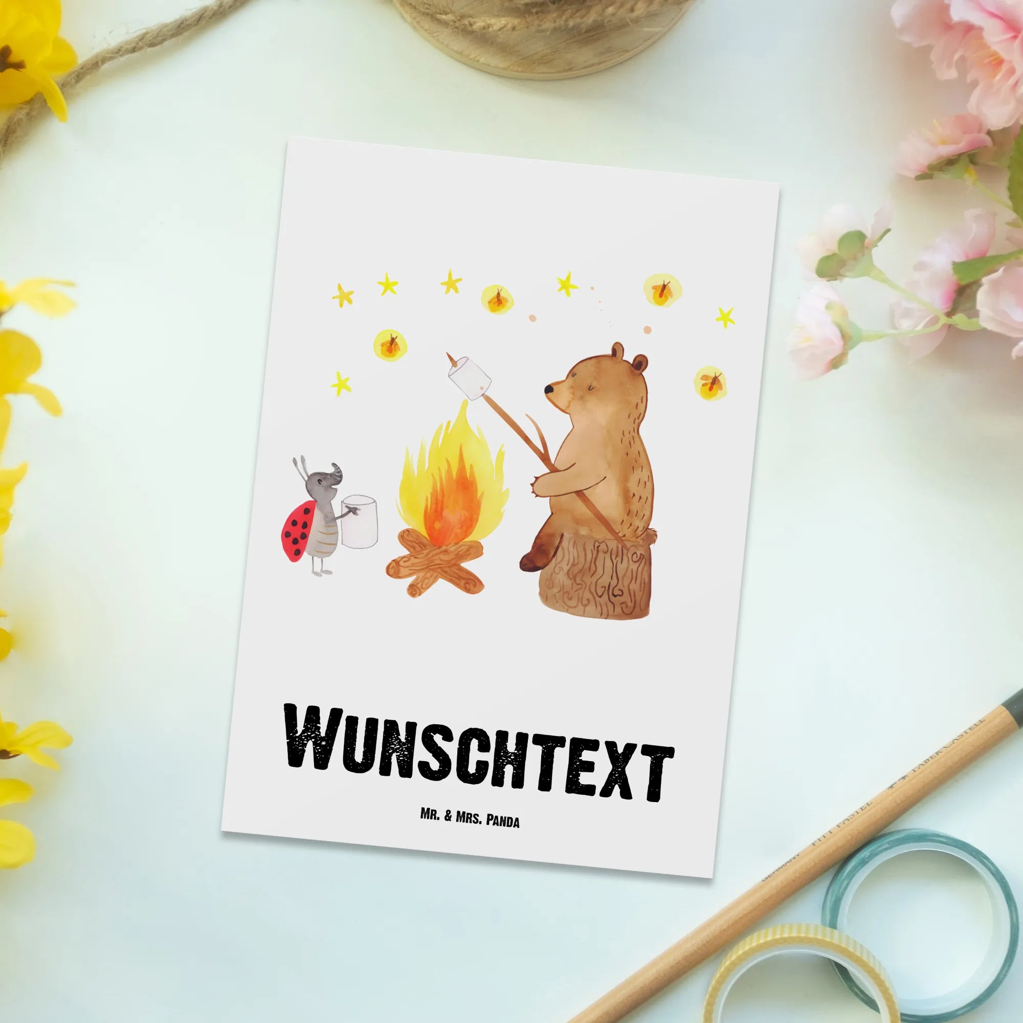 Personalizowana kartka pocztowa Niedźwiedź i biedronka przy ognisku
