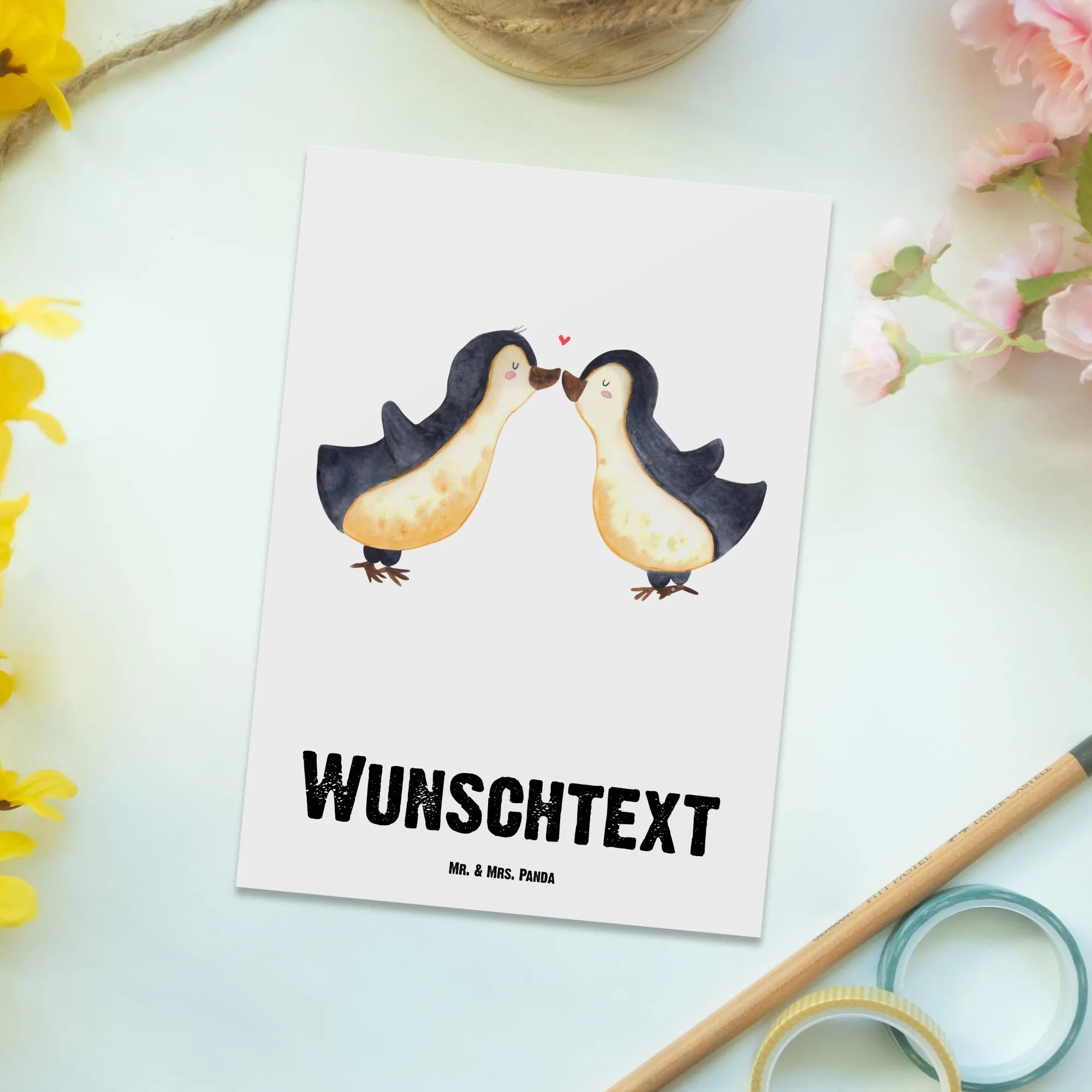 Personalizowana kartka pocztowa Pingwiny Pocałunek