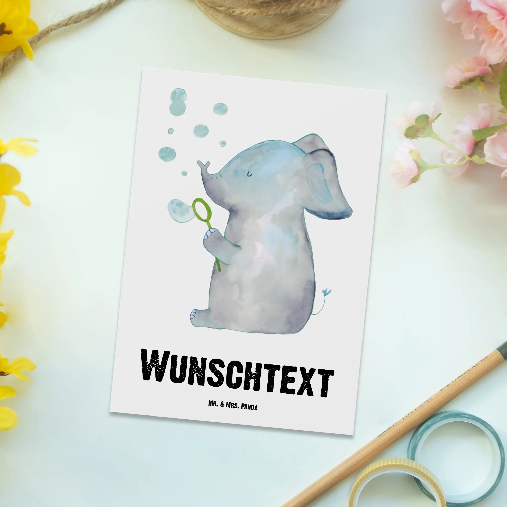 Personalizowana kartka pocztowa słoń bańki mydlane