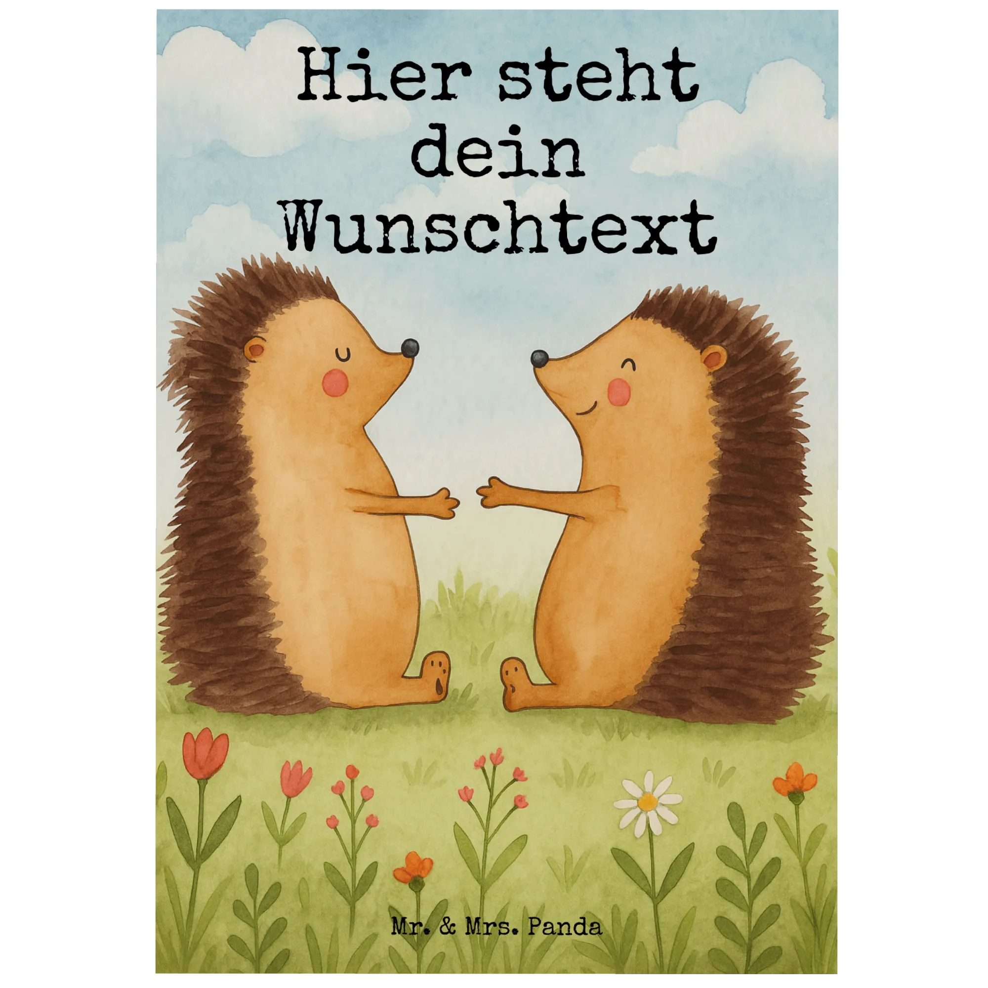 Personalisierte Postkarte „Hochzeit Igel Liebe" – ein kleines Kunstwerk für große Gefühle. Unsere liebevoll gestaltete Postkarte mit Namen und Wunschtext bringt Herz und Humor zusammen: Zwei handgezeichnete Igel im zarten Aquarell-Look strecken sich die Pfoten entgegen und strahlen pure Freude.