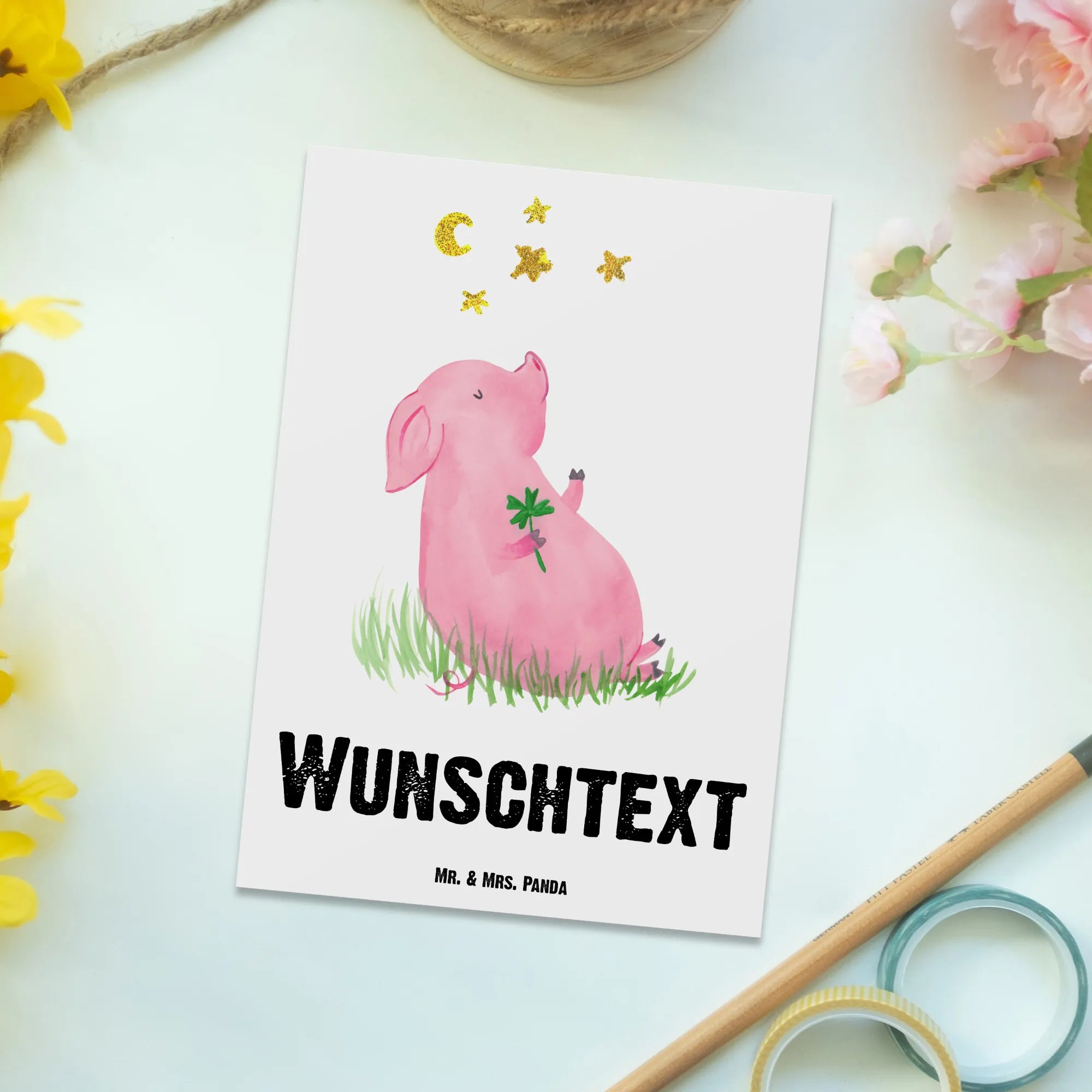 Personalizowana kartka pocztowa świnia Szczęście
