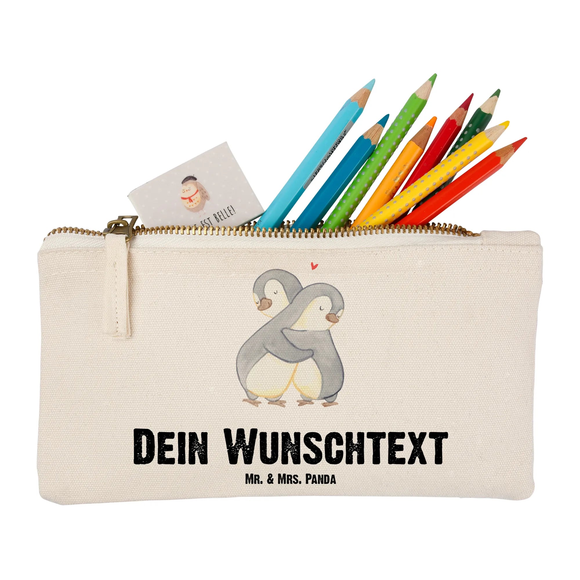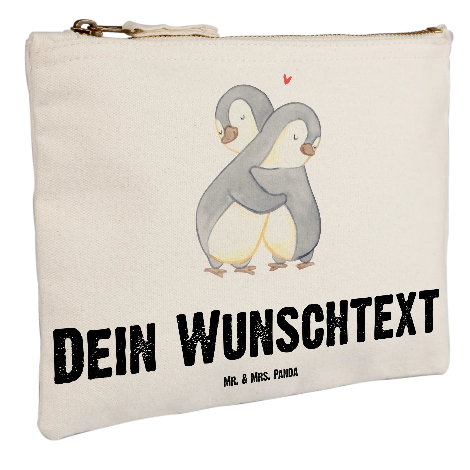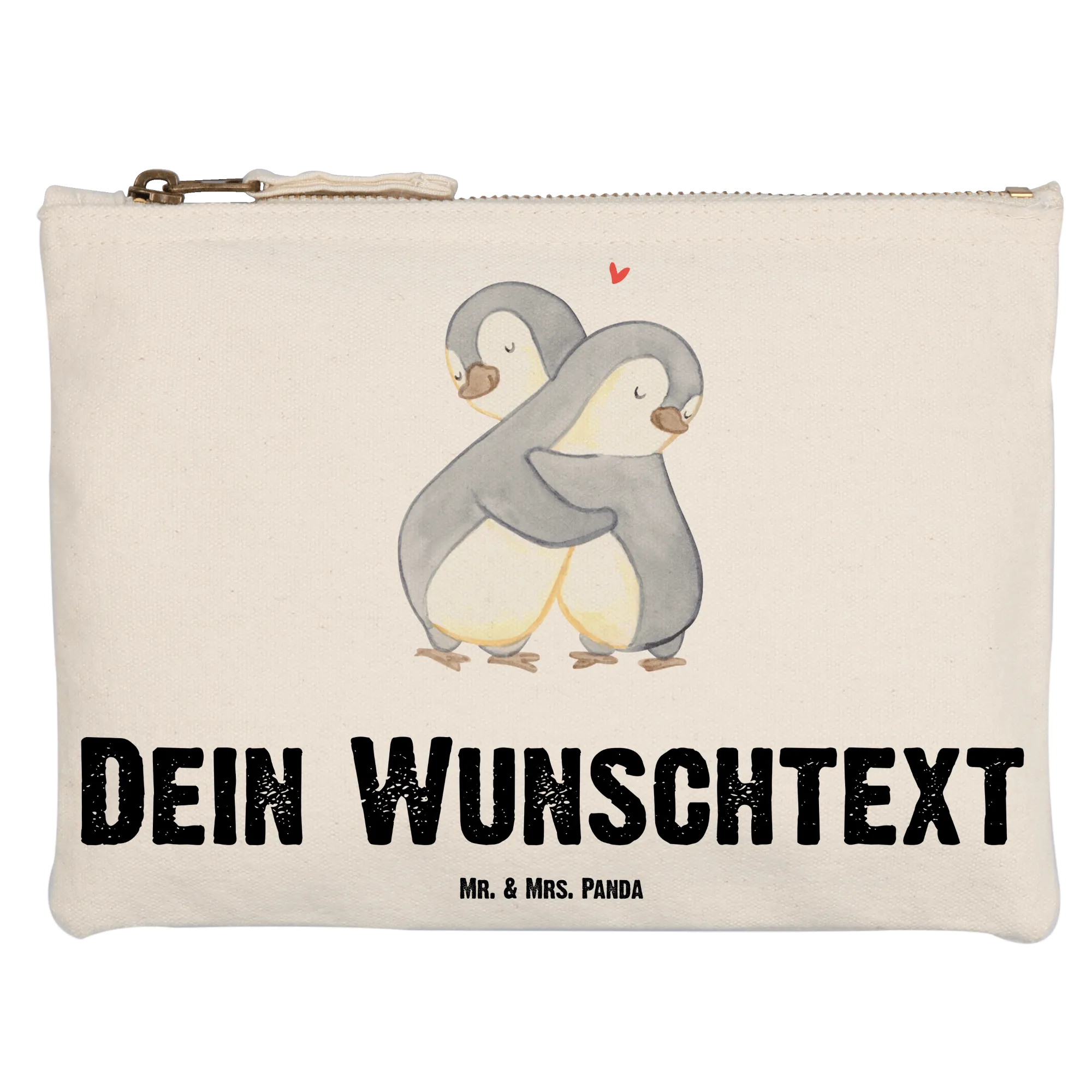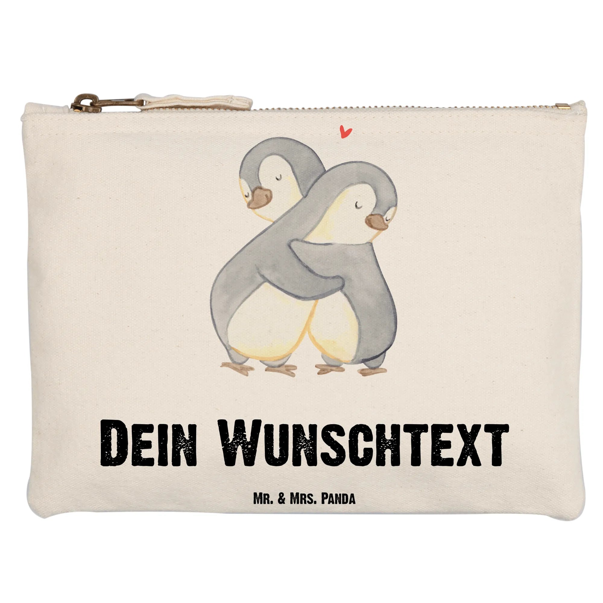 Entdecke die perfekte Geschenkidee mit der personalisierten Schminktasche "Pinguine Kuscheln" von Mr. & Mrs. Panda!