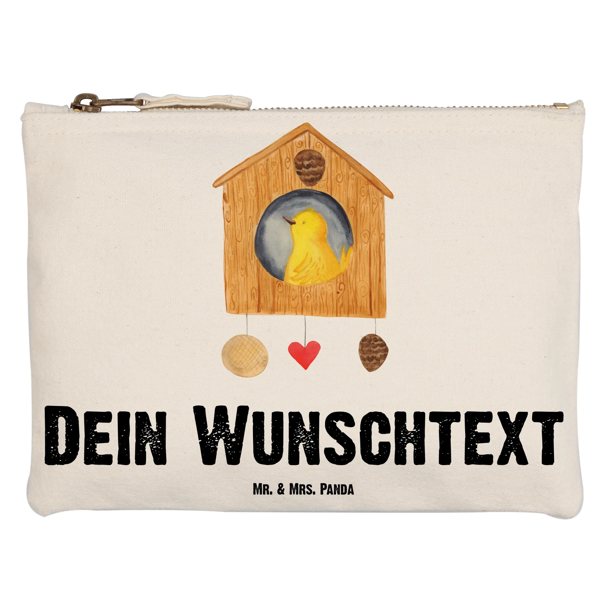 Entdecke die wunderschöne personalisierte Schminktasche mit dem süßen Motiv 'Vogelhaus sweet Home' aus der Small World Kollektion von Mr. & Mrs. Panda!
