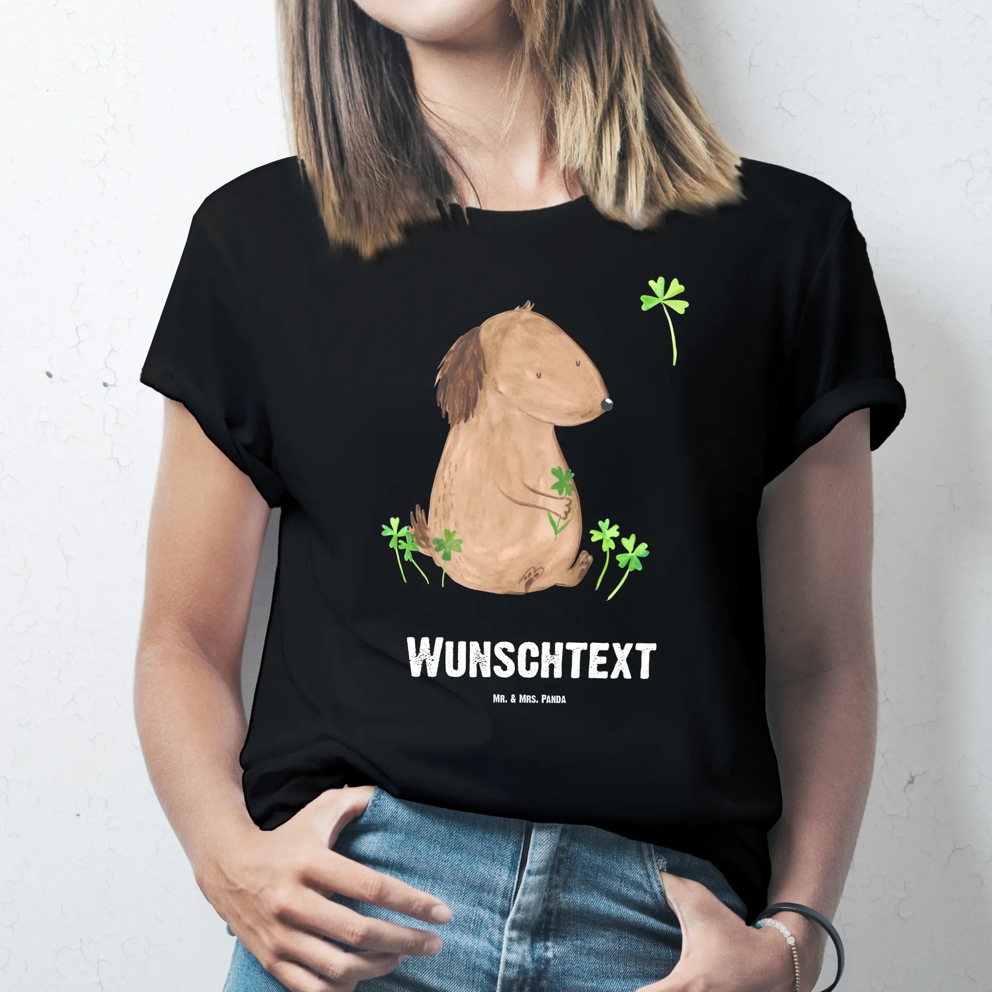 Größe L Personalisiertes T-Shirt „Hund Kleeblatt" – dein kleiner Glücksbringer von Mr. & Mrs. Panda