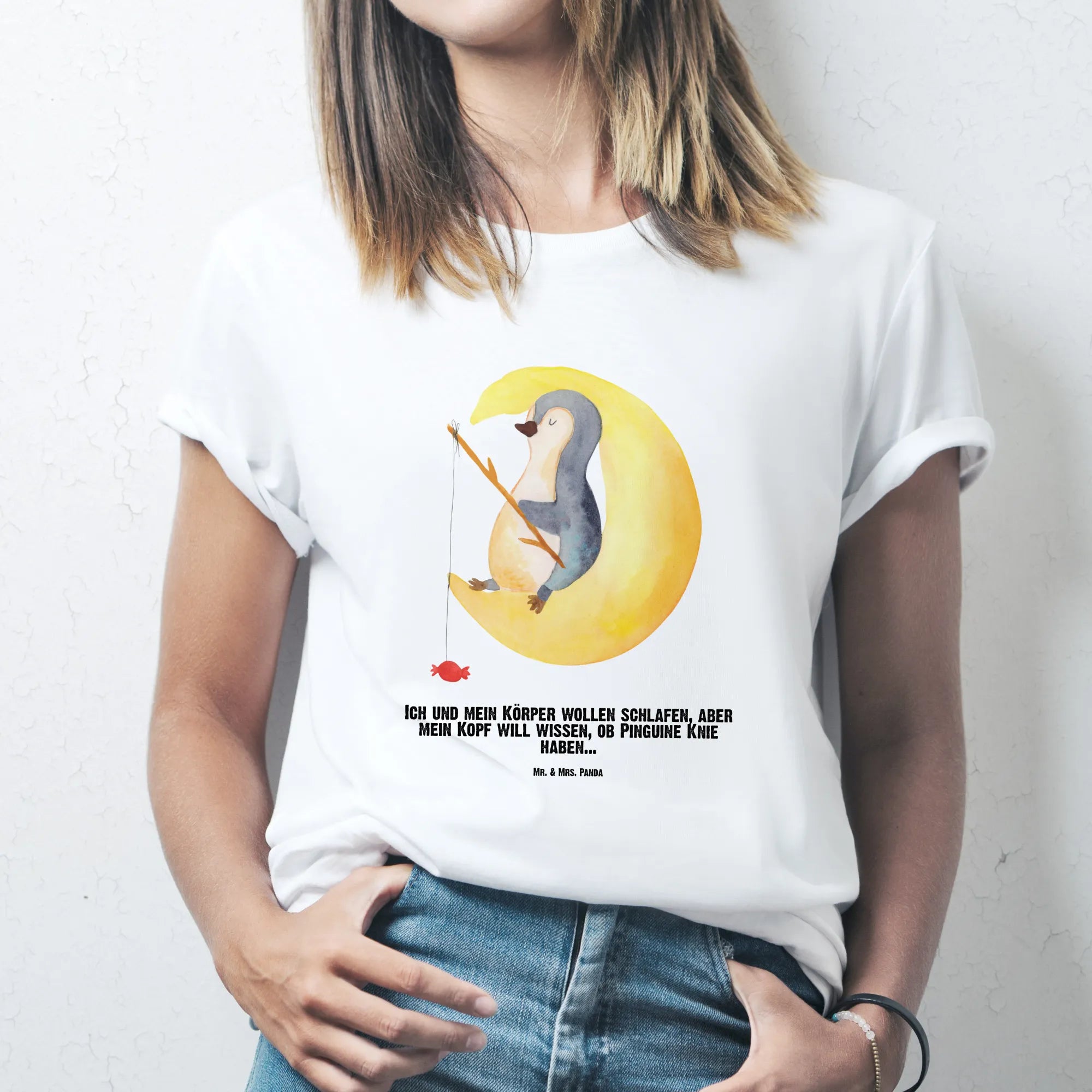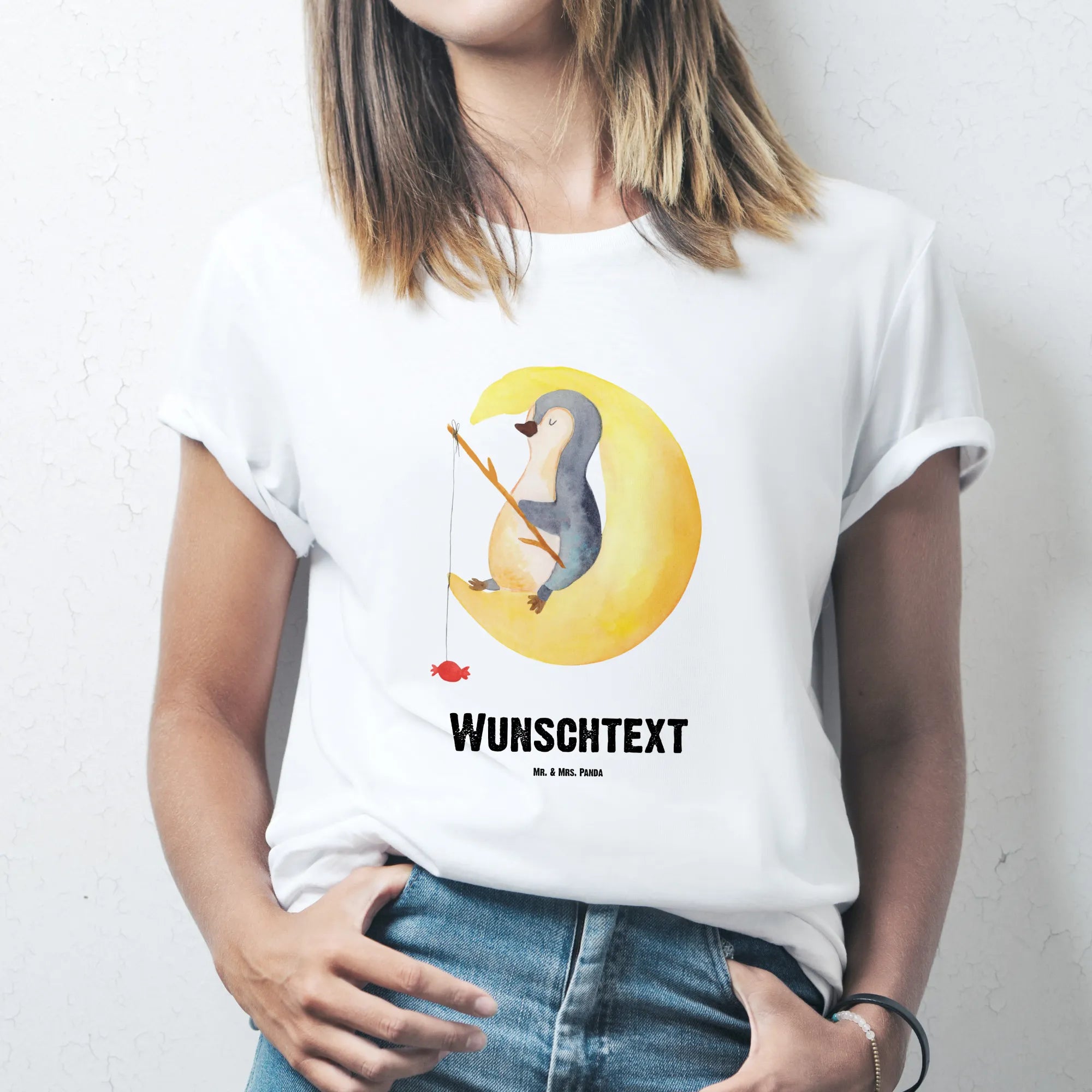Rozmiar L Personalizowana koszulka pingwin księżyc - Rozmiar S Spersonalizowany T-shirt - biały