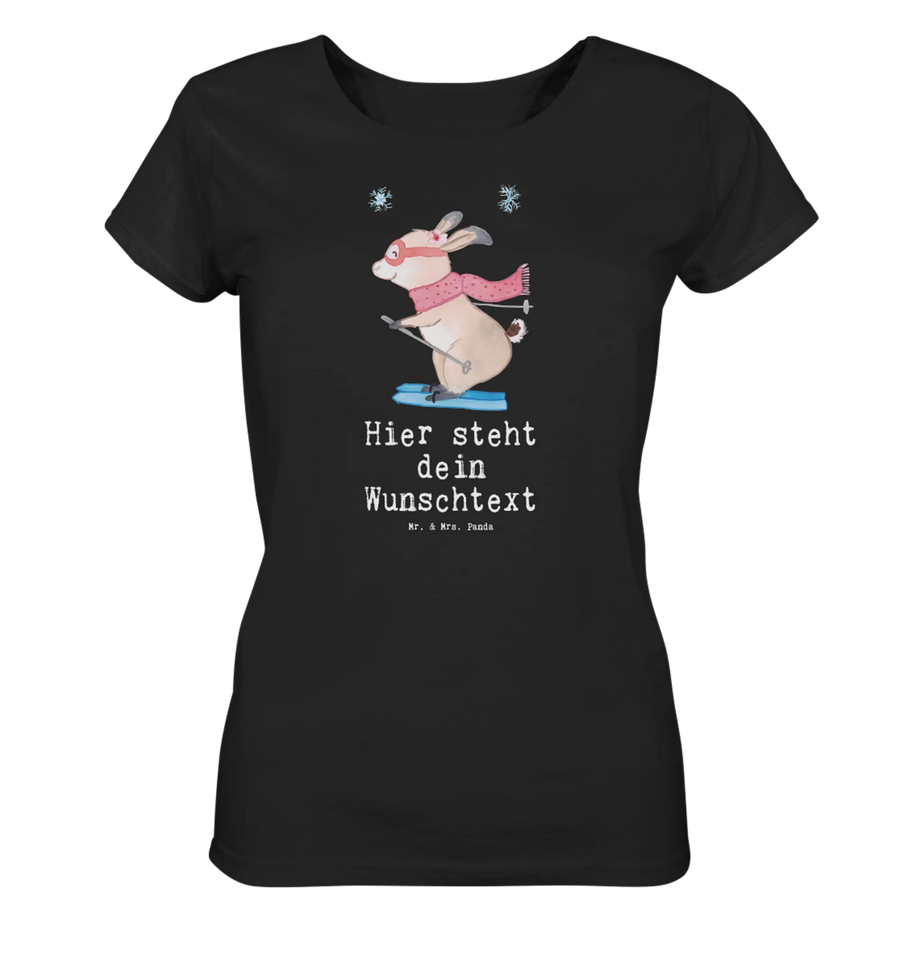Personalizowana koszulka damska królik narciarstwo - Rozmiar XL - Czarny