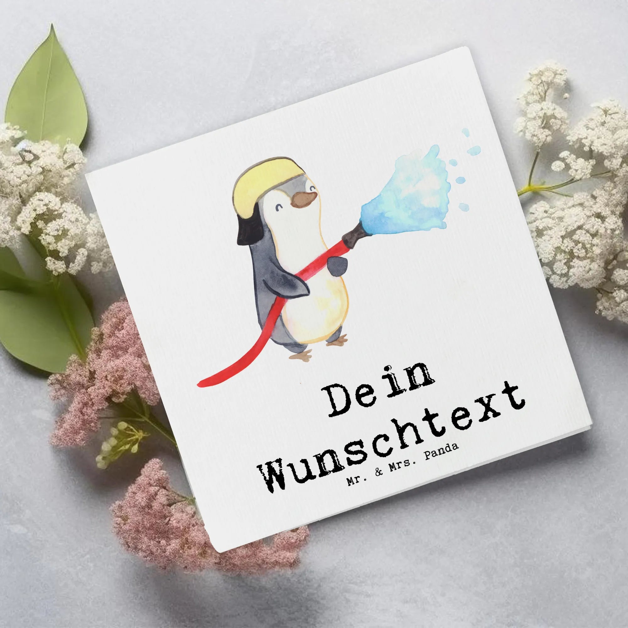 Die personalisierte Deluxe Karte Feuerwehrmann mit Herz von Mr. & Mrs. Panda ist das perfekte Geschenk für Feuerwehrleute, ihre Freunde und Angehörigen. Diese hochwertige quadratische Karte (140 mm x 140 mm) aus edlem Karton ist nicht nur ein wunderschöner Gruß, sondern eignet sich auch für besondere Anlässe wie Geburtstage, Hochzeiten oder Abschiede.