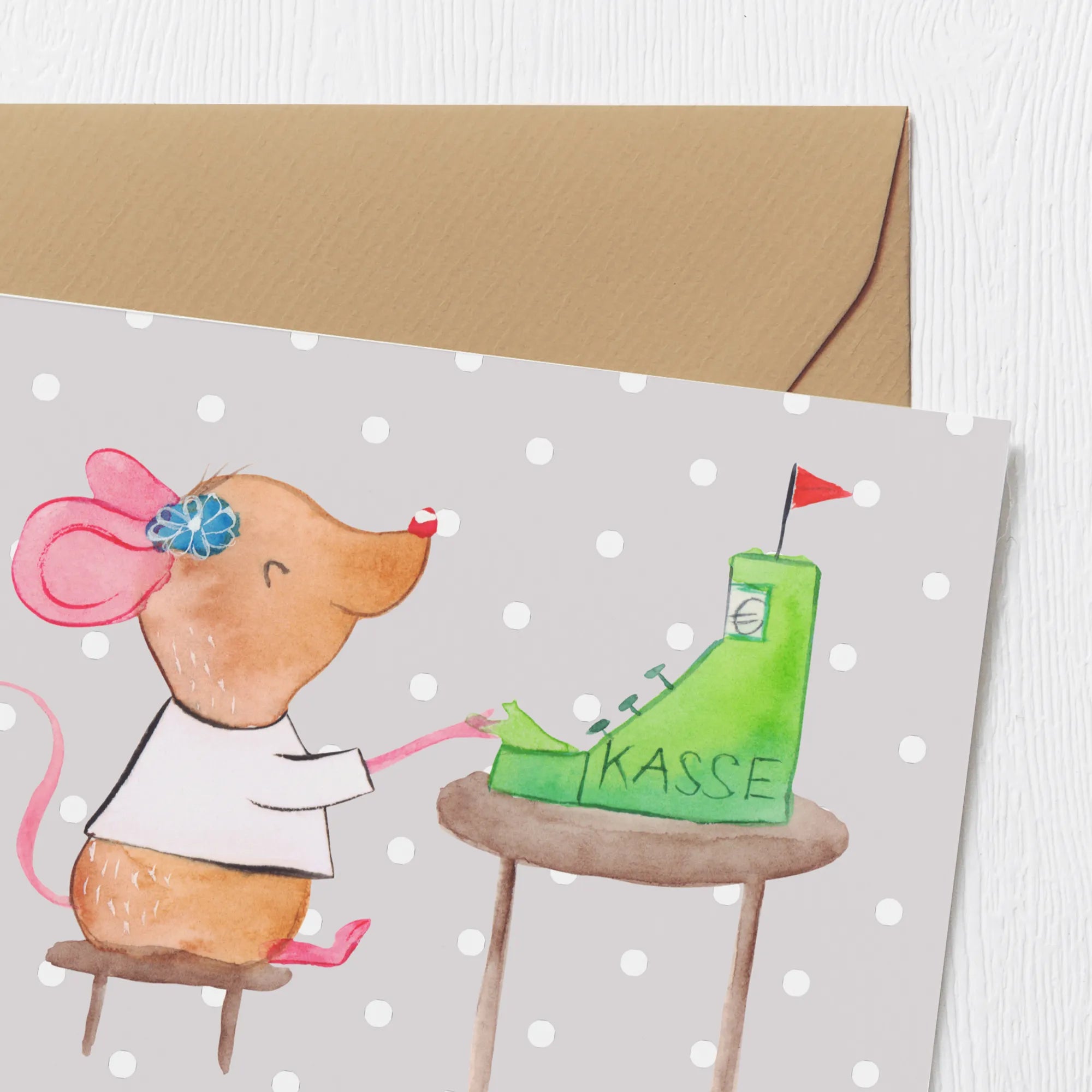 Diese Karte ist nicht nur ein echter Hingucker mit ihrem süßen Motiv einer kleinen, fleißigen Maus, sondern vermittelt auch eine herzliche Botschaft. Egal, ob zum Jobbeginn, zur Beförderung, zum Jubiläum oder als kleine Aufmerksamkeit im Ruhestand, diese Karte sorgt immer für ein Lächeln! Mit dem witzigen Spruch "Du bist nur ein halber Mensch, wenn du keine Kassiererin bist" wird die Botschaft ganz klar: Auch kleine Berufe sind wichtig und verdienen Anerkennung.