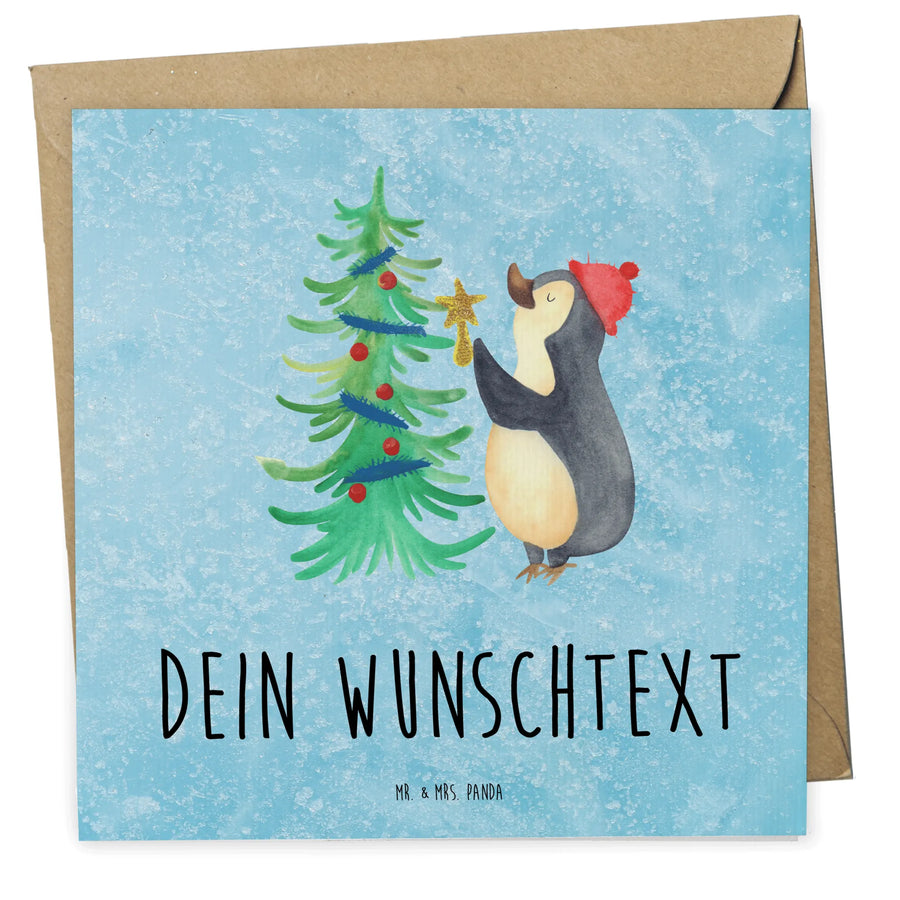Personalisierte Deluxe Karte Pinguin Weihnachtsbaum - Eisblau