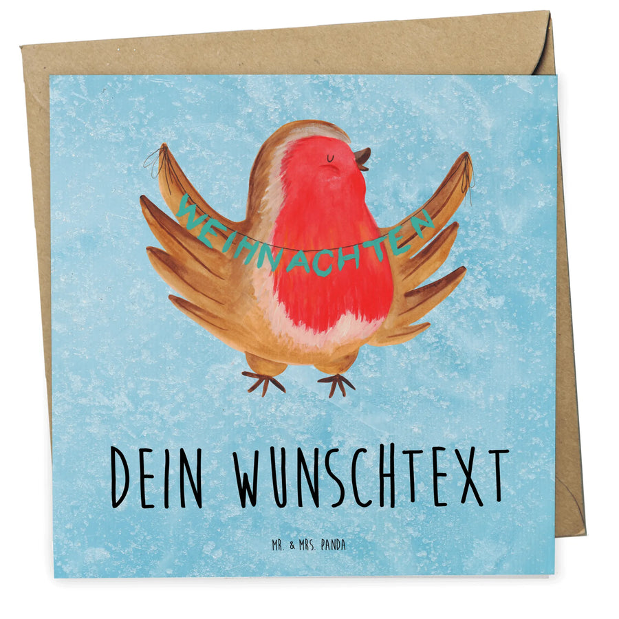 Die personalisierte Deluxe Karte "Rotkehlchen Weihnachten" von Mr. & Mrs. Panda ist das perfekte Geschenk für die festliche Jahreszeit. Diese wunderschöne, quadratische Karte misst 140 mm x 140 mm und besteht aus hochwertigem 300 Gramm Karton, der matt glänzend bedruckt ist.