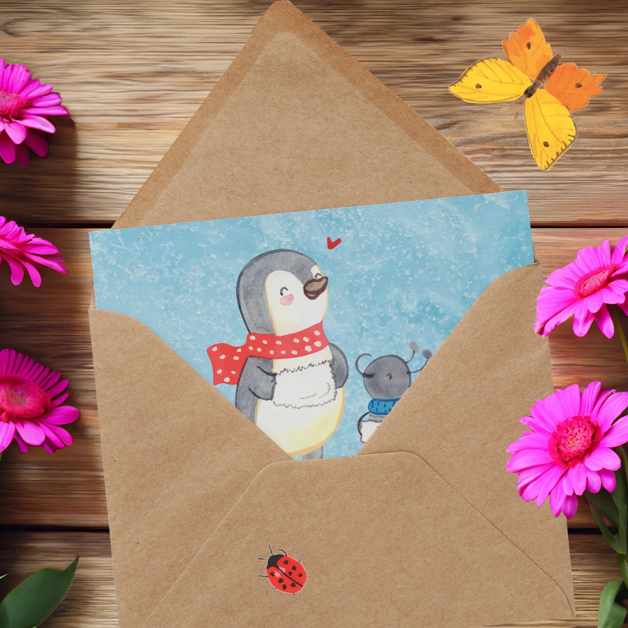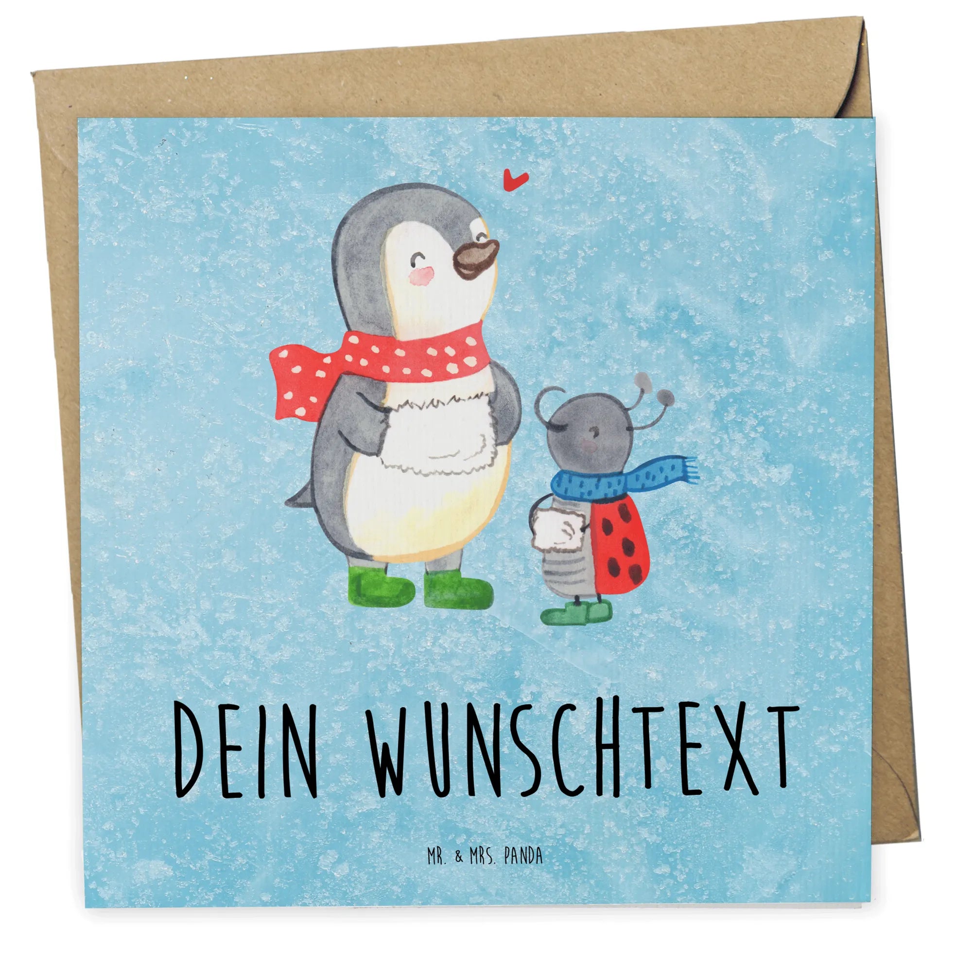 Das bezaubernde Motiv 'Smörle Winterzeit' zeigt zwei niedliche Charaktere im winterlichen Design – einen fröhlichen Pinguin in grünen Stiefeln und seinen kleinen marienkäferähnlichen Freund. Diese liebevollen Figuren verbreiten eine Atmosphäre von Freundschaft, Freude und der Wärme, die die Weihnachtszeit mit sich bringt. Die Karte bietet Platz für Deinen Wunschnamen oder Wunschtext, was sie einzigartig macht.