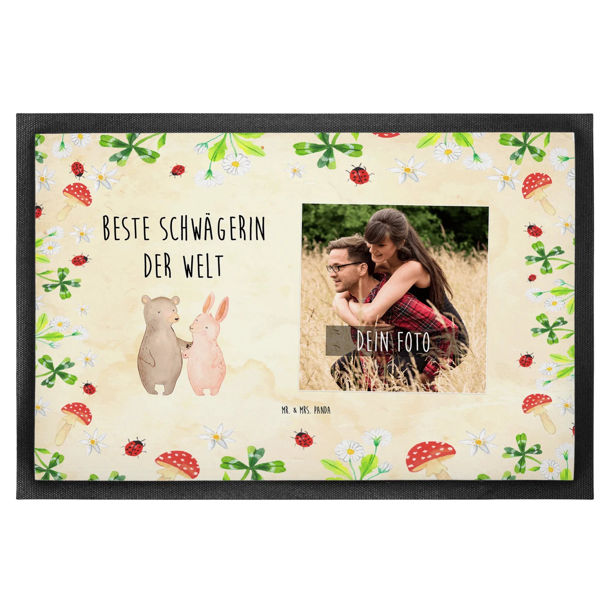 Die personalisierte Foto Fußmatte "Hase Beste Schwägerin der Welt" von Mr. & Mrs. Panda ist das perfekte Geschenk für all jene, die ihren Schwiegereltern, Schwestern, Brüdern oder Ehepartnern eine besondere Freude machen möchten.