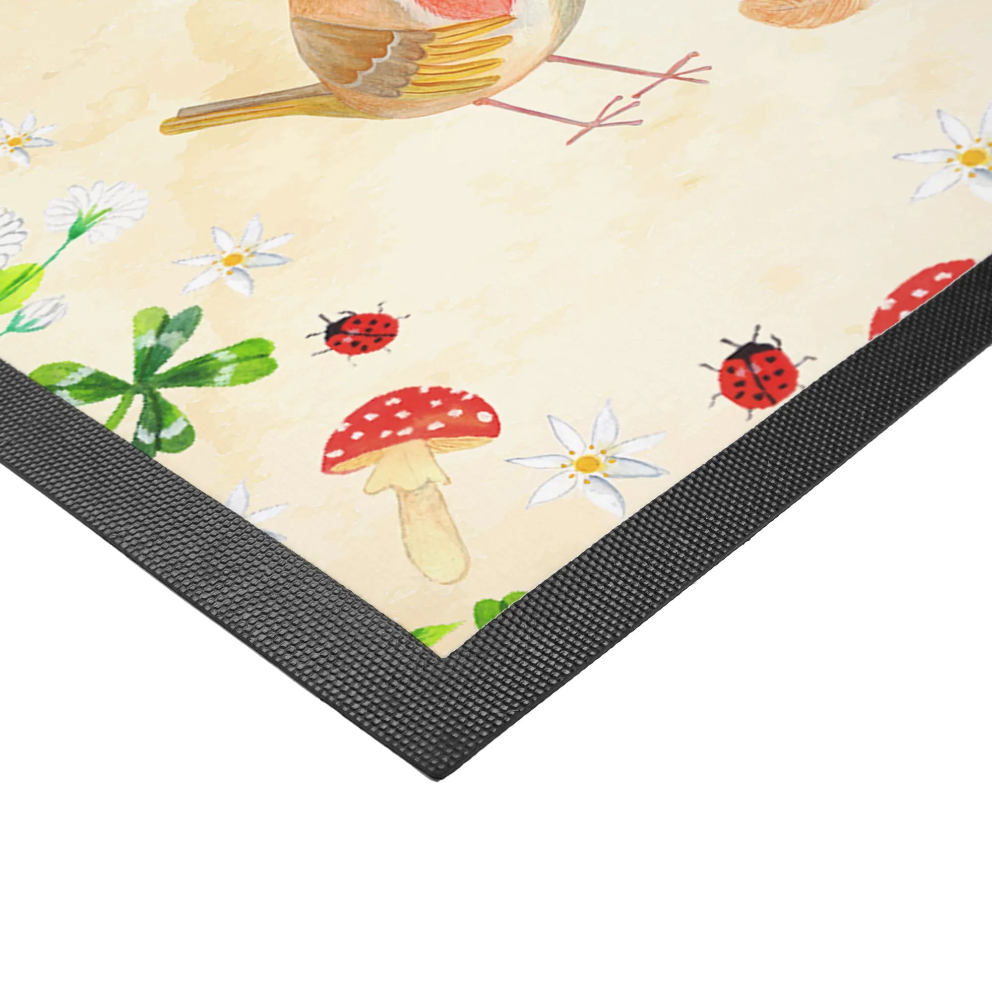 Aus robuster und wetterbeständiger Polyesterfilz hergestellt, bietet sie nicht nur eine schöne Optik, sondern auch Funktionalität. Das niedliche Rotkehlchen strahlt eine friedliche Ruhe aus und erinnert uns daran, dass es immer wichtig ist, den Moment zu genießen. Dein persönlicher Text oder Wunschfoto macht diese Fußmatte einzigartig und individuell.
