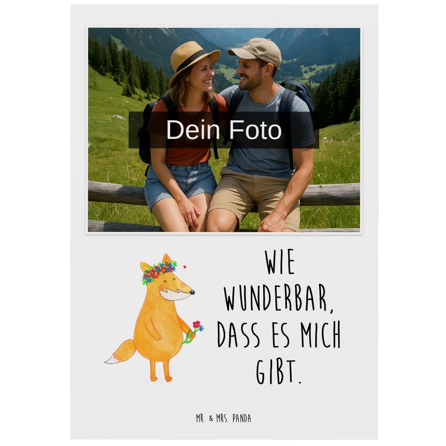 Entdecke die liebevoll gestaltete personalisierten Foto Postkarte Fuchs Blumenliebe aus der Fuchs Kollektion von Mr. & Mrs. Panda. Diese zauberhafte Postkarte ist nicht nur ein Ausdruck deiner Kreativität, sondern auch der perfekte Liebesbeweis für deine beste Freundin oder für dich selbst.