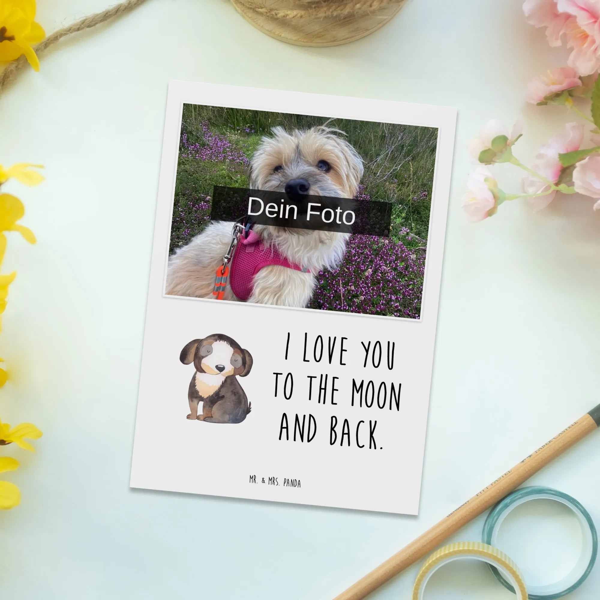 Die personalisierte Foto Postkarte "Hund entspannt" aus der beliebten Hunde Kollektion von Mr. & Mrs. Panda ist das perfekte Geschenk für alle Hundeliebhaber! Egal, ob für einen Geburtstag, einen Jubiläumstag oder einfach so zwischendurch - diese Postkarte bringt jedem Herz zum Strahlen!