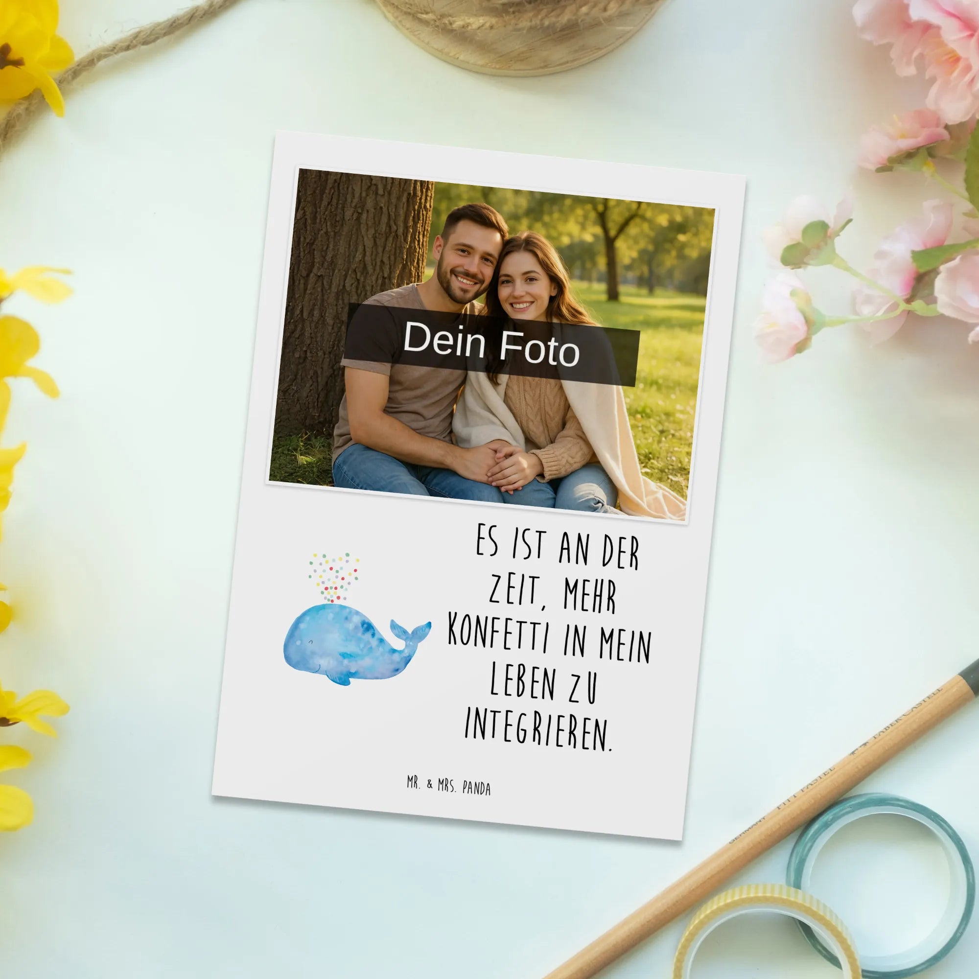Die personalisierte Foto Postkarte mit dem schönen Wal und Konfetti von Mr. & Mrs. Panda ist das perfekte Geschenk für jeden Anlass. Ob als Motivationsschub nach einer Trennung, als liebevolle Unterstützung während einer Diät oder einfach nur, um jemandem zum Geburtstag eine Freude zu machen – diese Postkarte wird Herzen höher schlagen lassen!