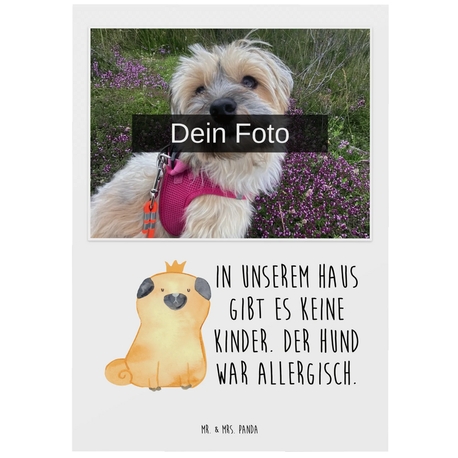 Personalizowana pocztówka ze zdjęciem mops korona
