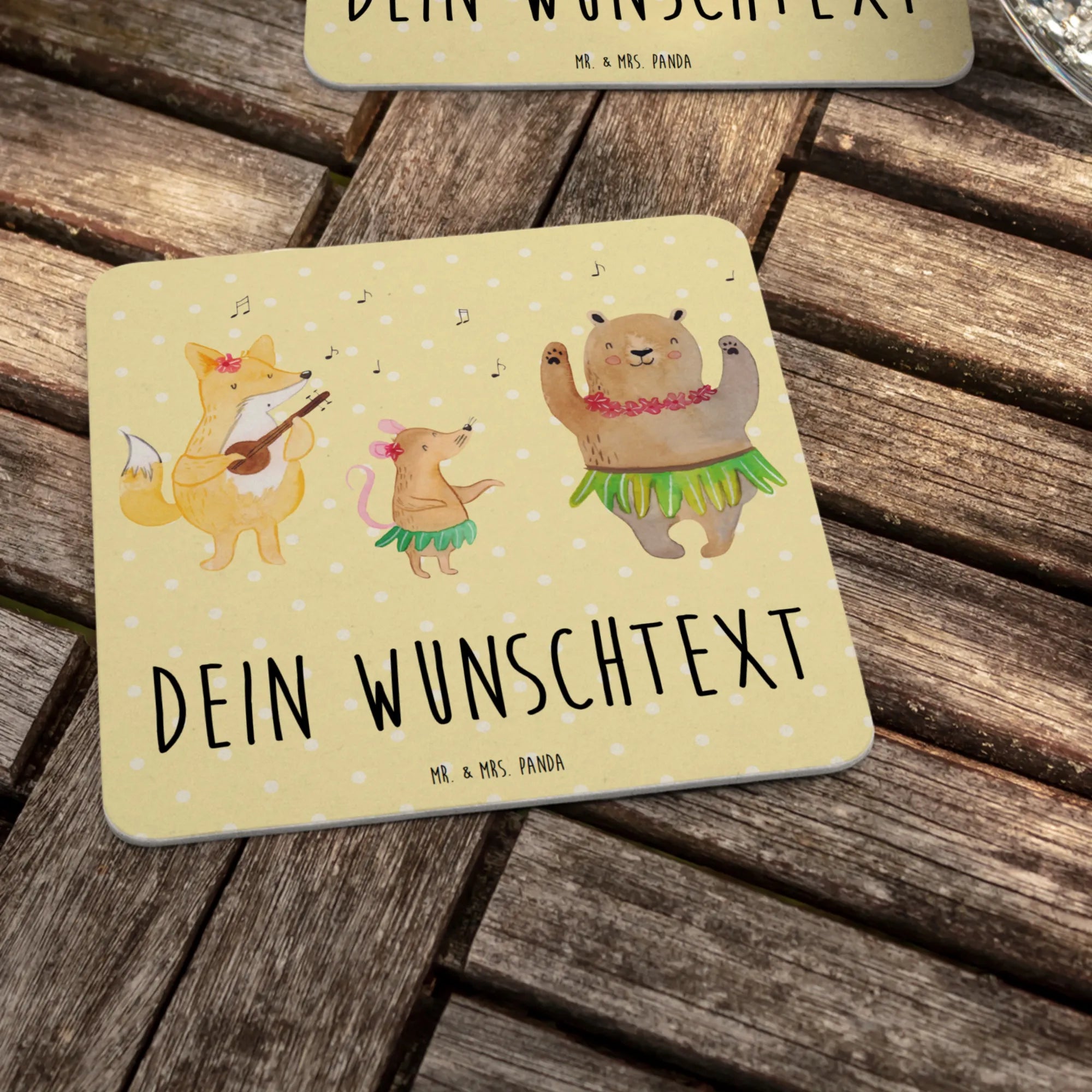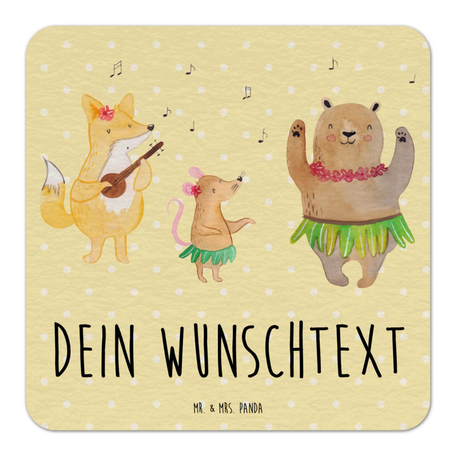 Mit niedlichen Waldbewohnern, die in Hula-Röcken tanzen und zu fröhlicher Musik schwingen, versetzen sie dich sofort in Urlaubsstimmung und sorgen für gute Laune bei jedem Anlass. Ein personalisierter Bierdeckel mit deinem Namen oder Wunschtext macht jeden Abend unvergesslich.