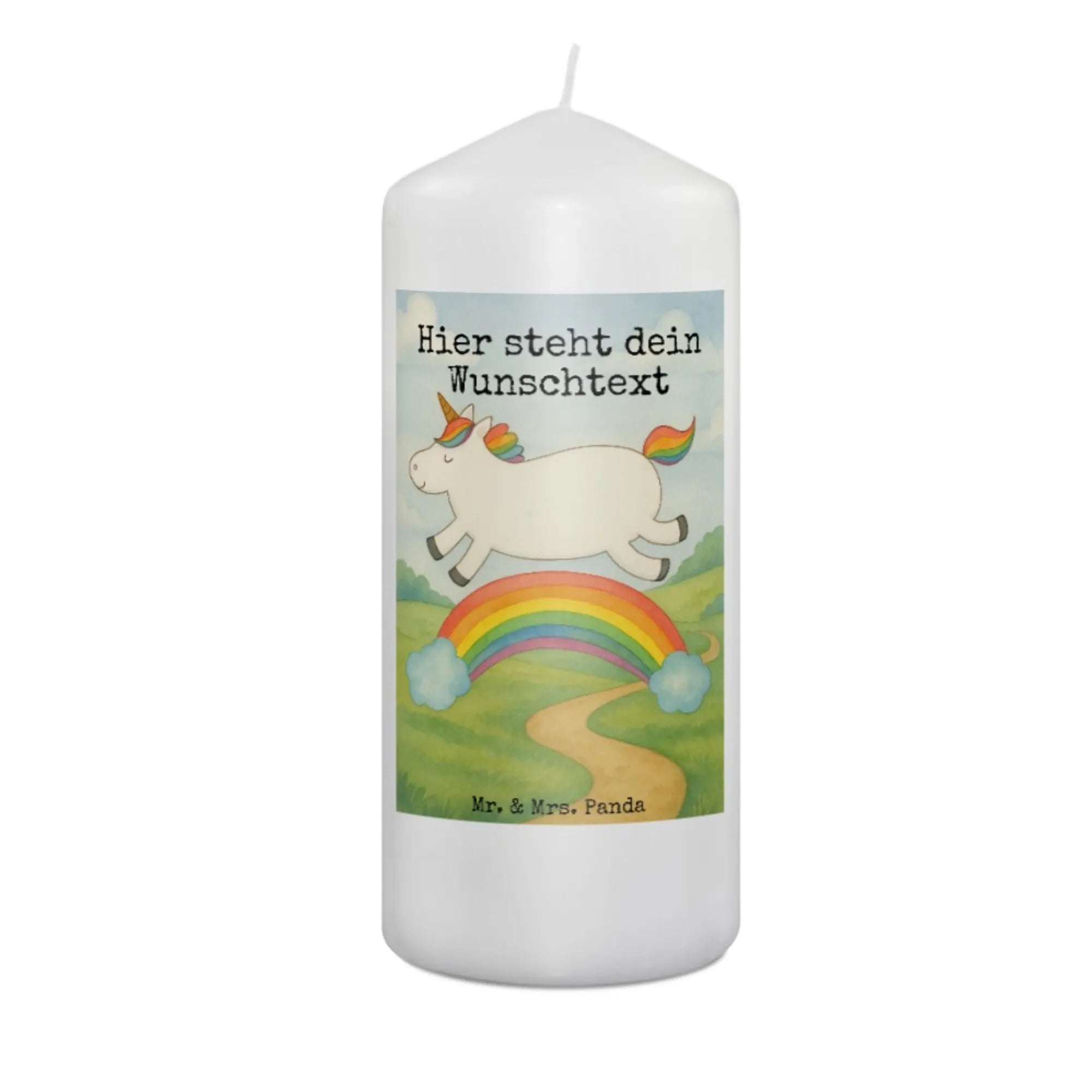 Personalisierte Kerze Einhorn Regenbogen Design - 19 x 8 cm