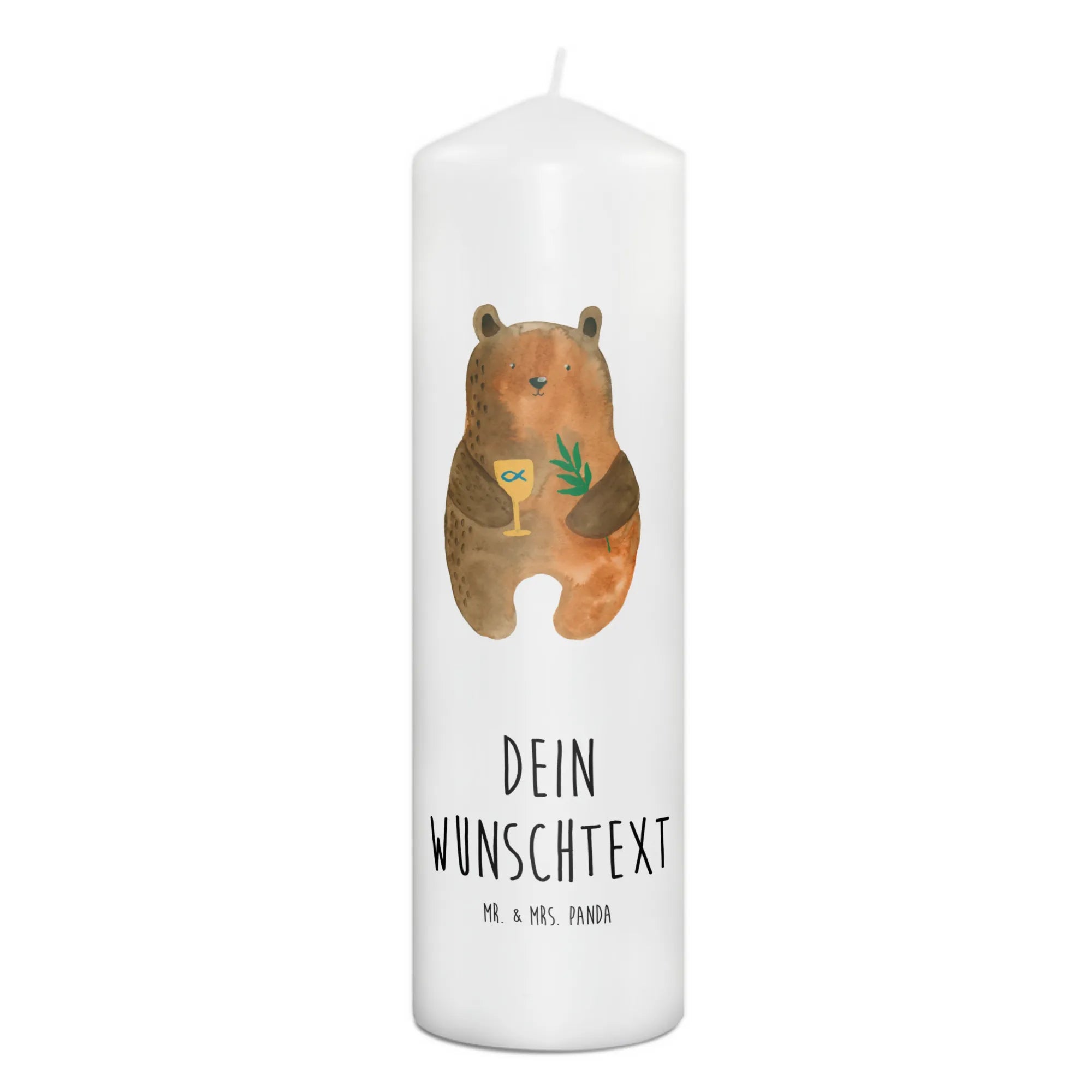 Diese personalisierte Kerze aus der Kollektion Bär von Mr. & Mrs. Panda ist das perfekte Geschenk für jeden, der eine Konfirmation feiert. Mit ihrem niedlichen Motiv des Konfirmation-Bären, der einen goldenen Kelch und einen Zweig in der Hand hält, bringt sie Freude und Feierlichkeit in jeden Gottesdienst.