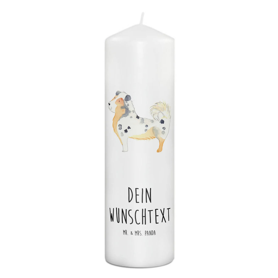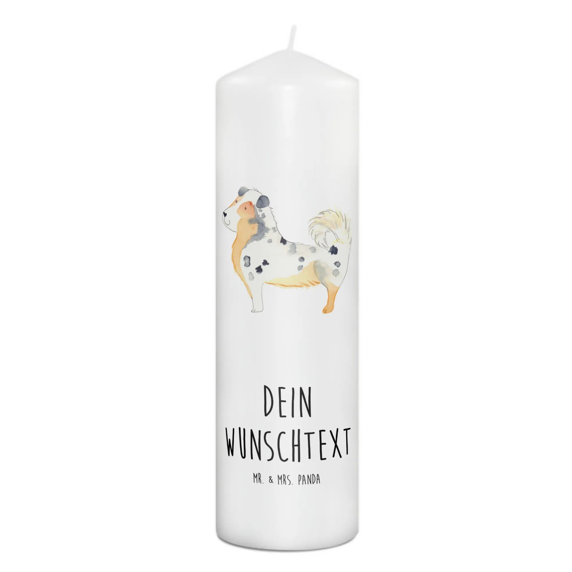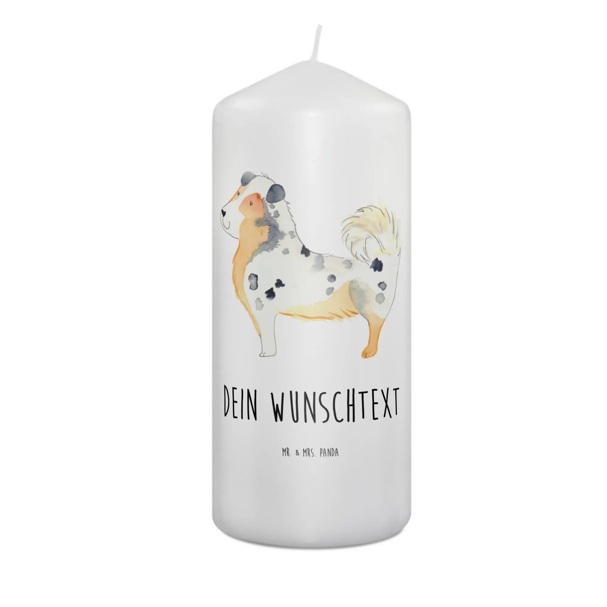 Entdecke die wunderschöne personalisierte Kerze mit dem süßen Motiv des Australien Shepherds aus unserer exklusiven Hunde Kollektion von Mr. & Mrs. Panda! Diese edle Kerze ist das perfekte Geschenk für alle Hundeliebhaber, ob zur Taufe, Kommunion, zum Geburtstag oder einfach als liebevolles Taufgeschenk für junge Eltern. Mit einem Gewicht von 250 g und den idealen Maßen von 190 mm x 80 mm bringt sie einen Hauch von Eleganz in jeden Raum.