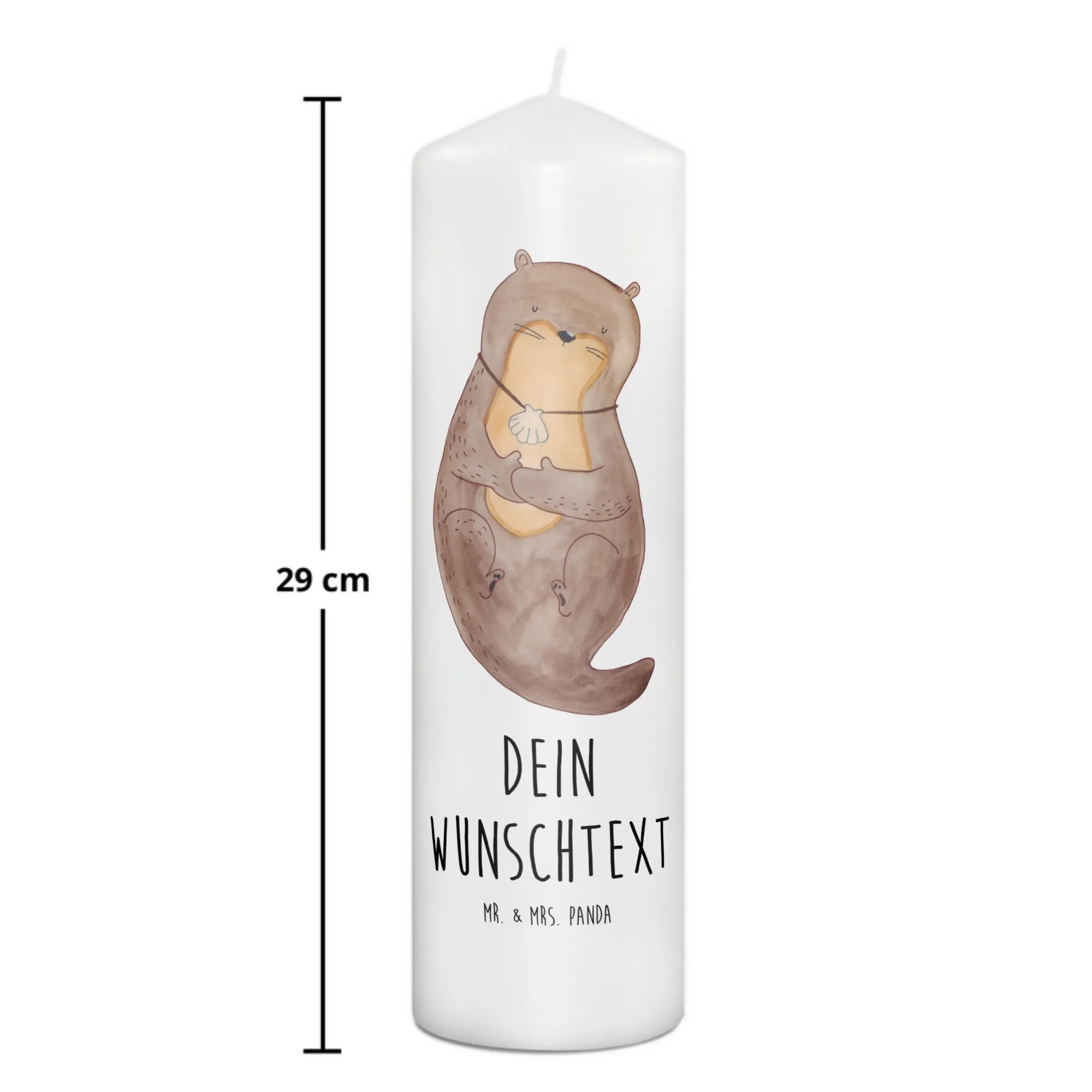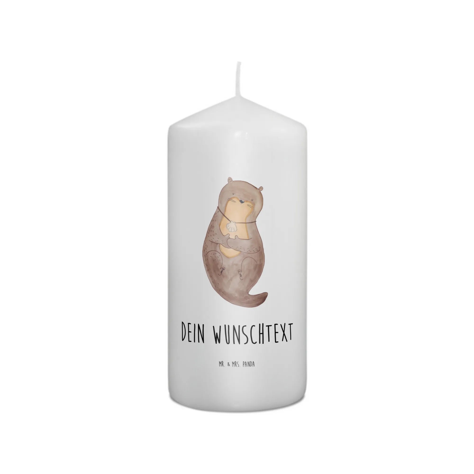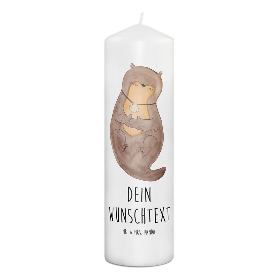 Entdecke die zauberhafte Welt der personalisierten Kerzen mit dem niedlichen Motiv "Otter mit Muschelmedaillon" aus der Otter-Kollektion von Mr. & Mrs. Panda!