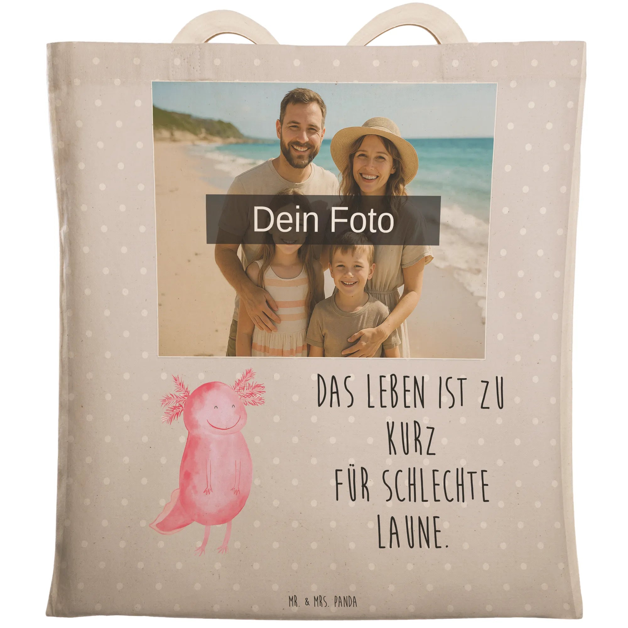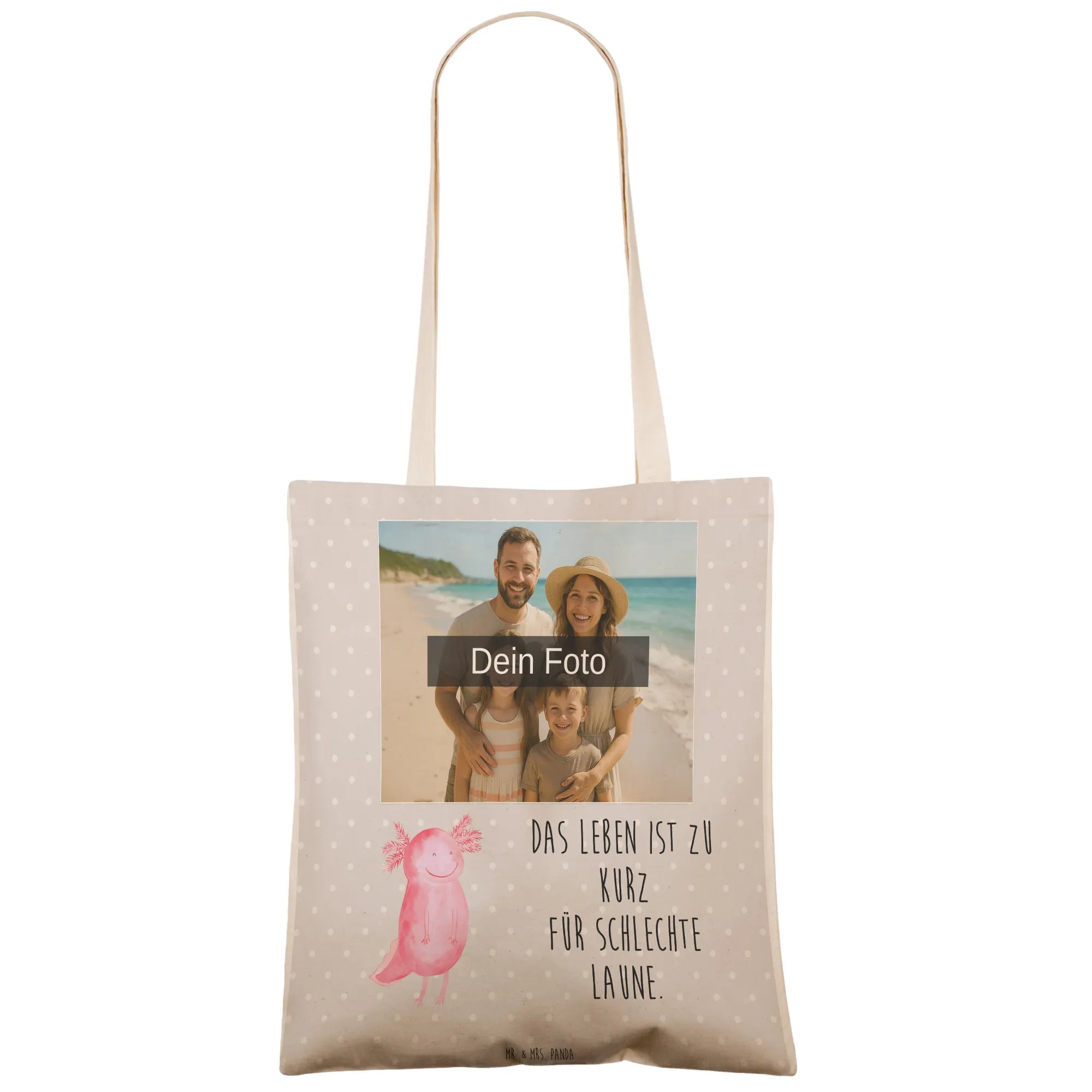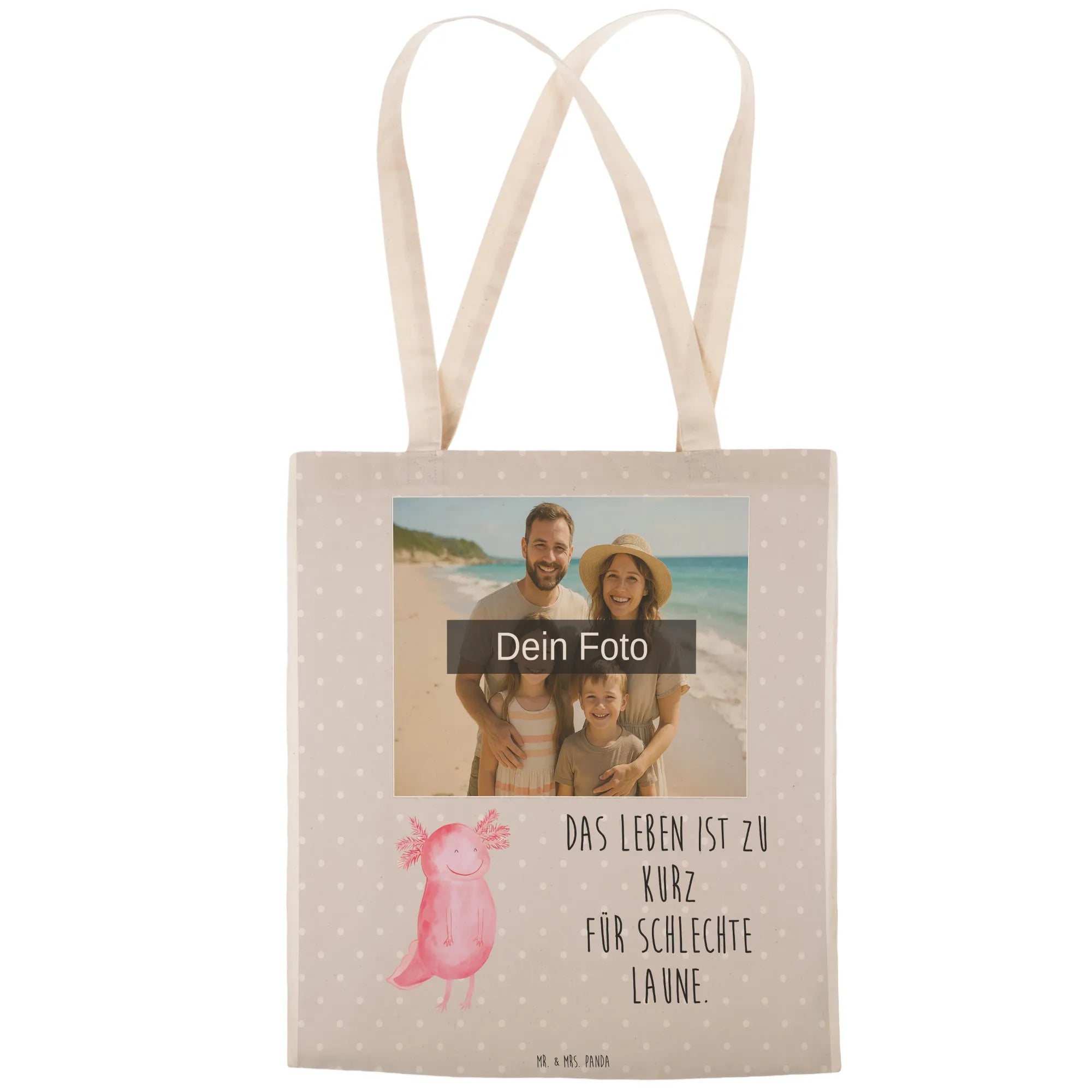 Personalisierte Foto Einkaufstasche Axolotl Glücklich