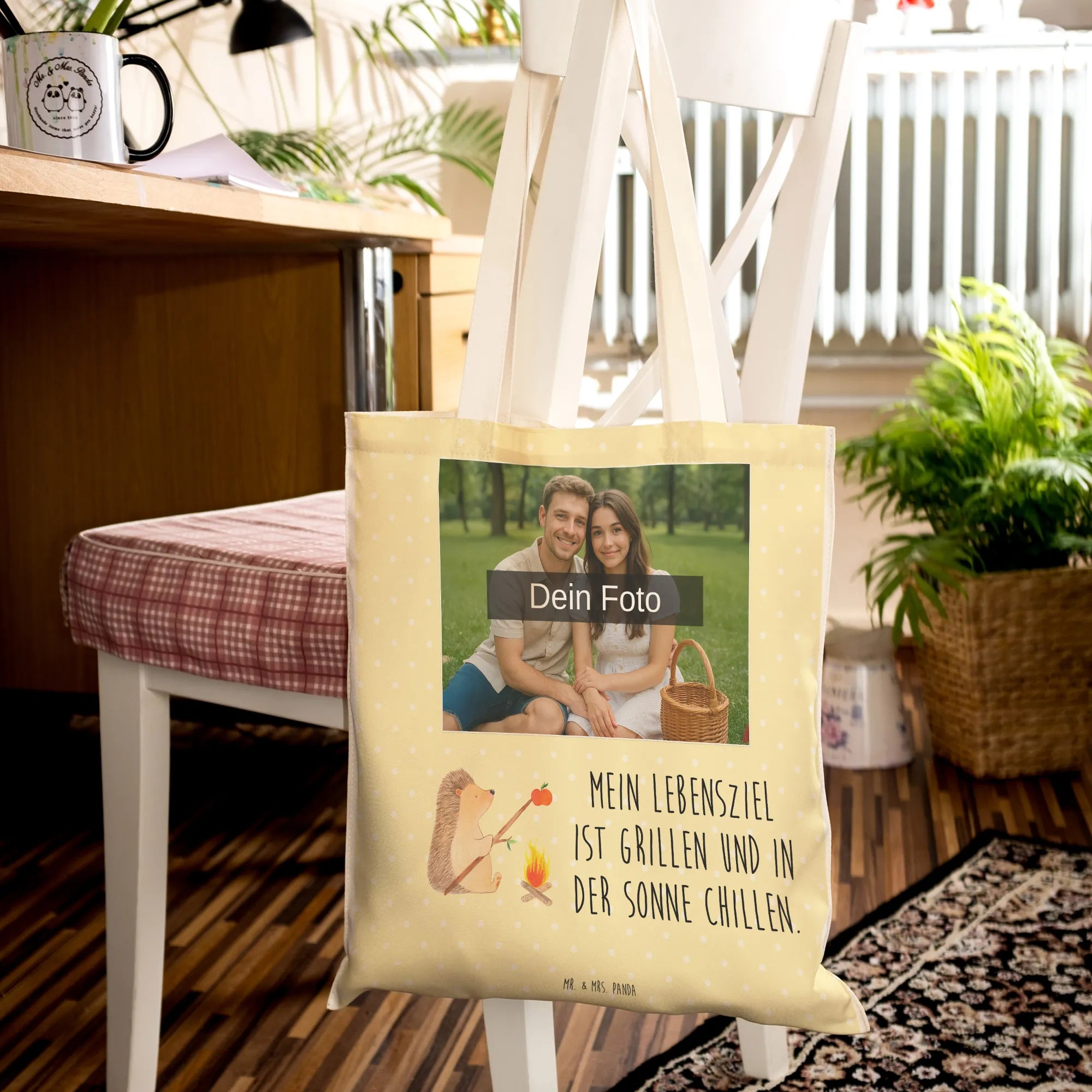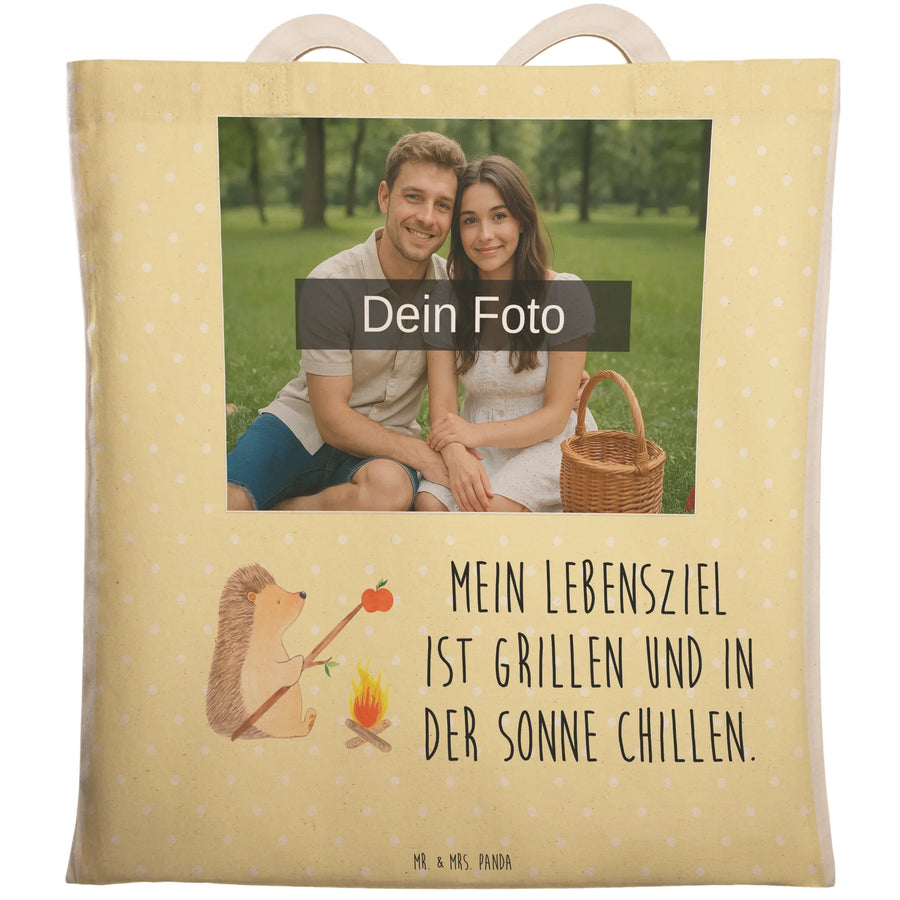 Personalisierte Foto Einkaufstasche Igel Grillen – Mr. & Mrs. Panda