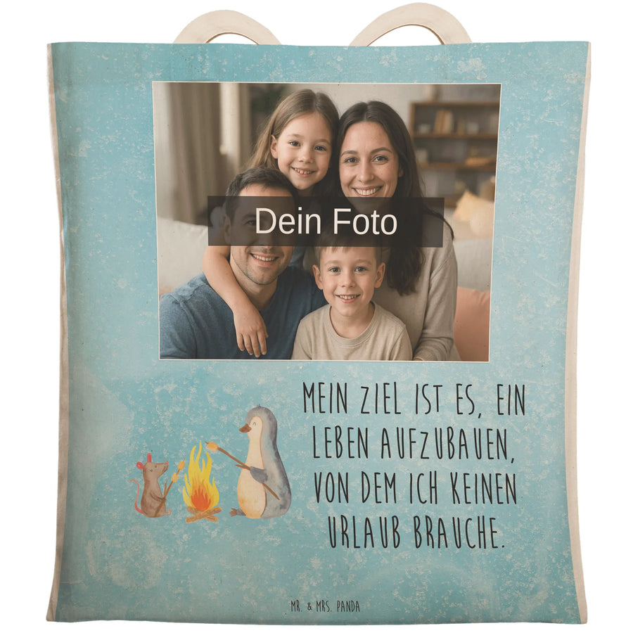 Personalisierte Foto Einkaufstasche Pinguin Lagerfeuer