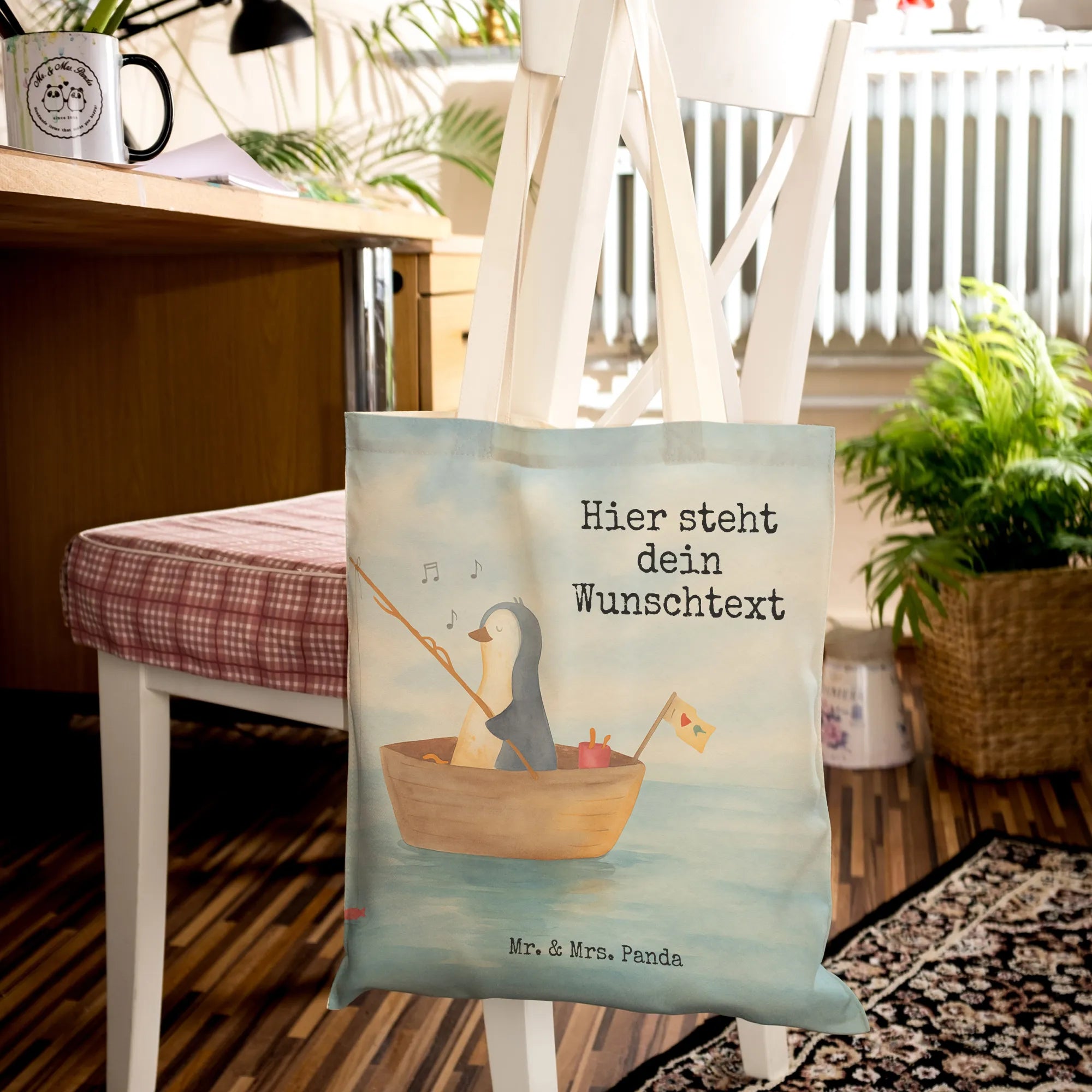 Personalisierte Einkaufstasche Pinguin Angelboot Design
