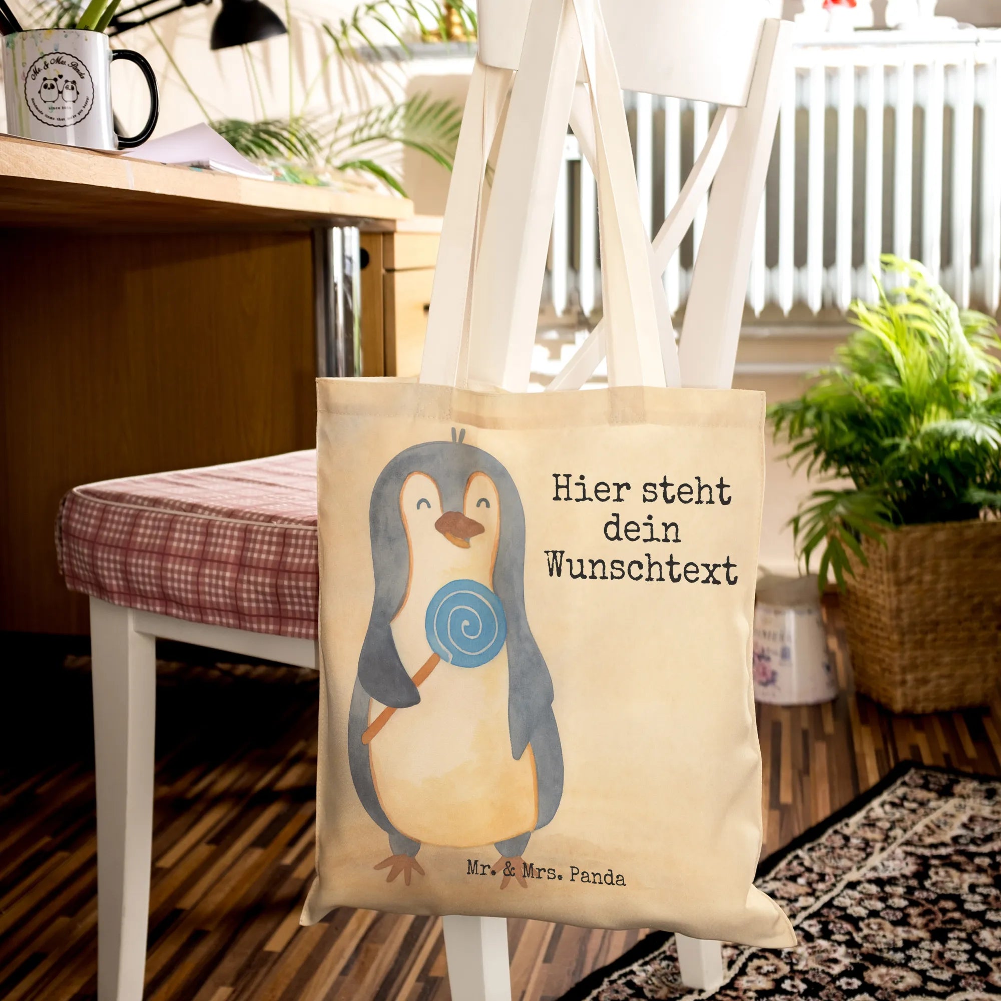 Personalisierte Einkaufstasche Pinguin Lolli Design