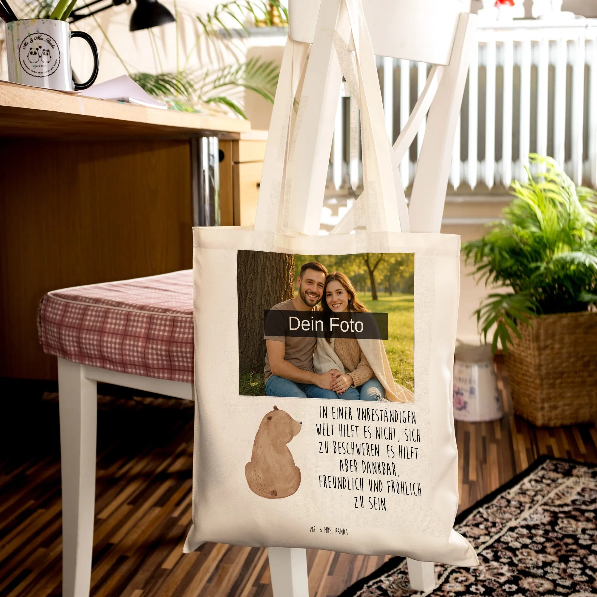 Personalisierte Foto Tragetasche Bär Schulterblick - Transparent