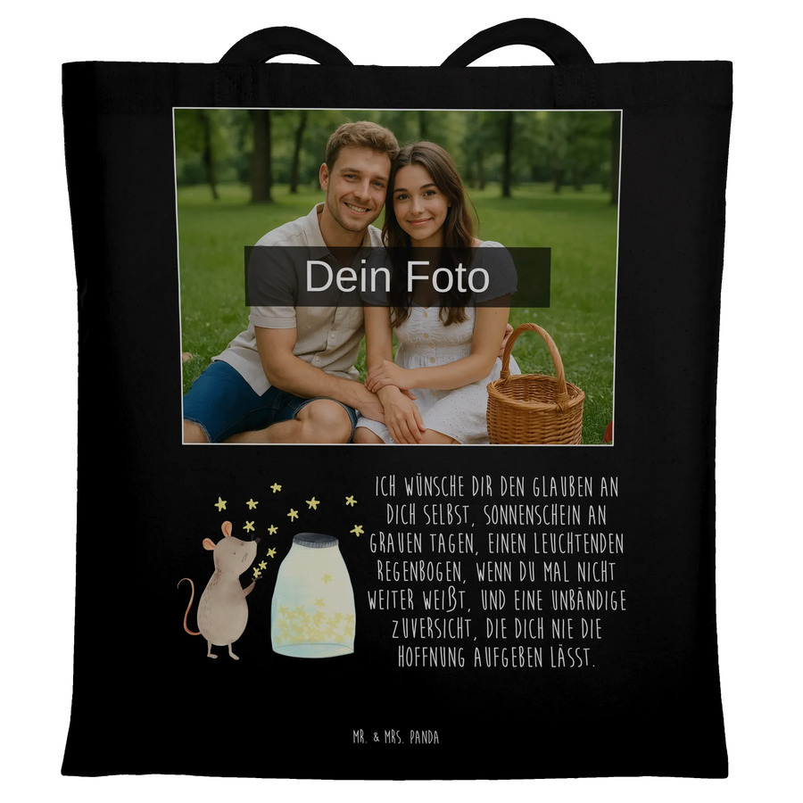 Personalisierte Foto Tragetasche Maus Sterne - Schwarz