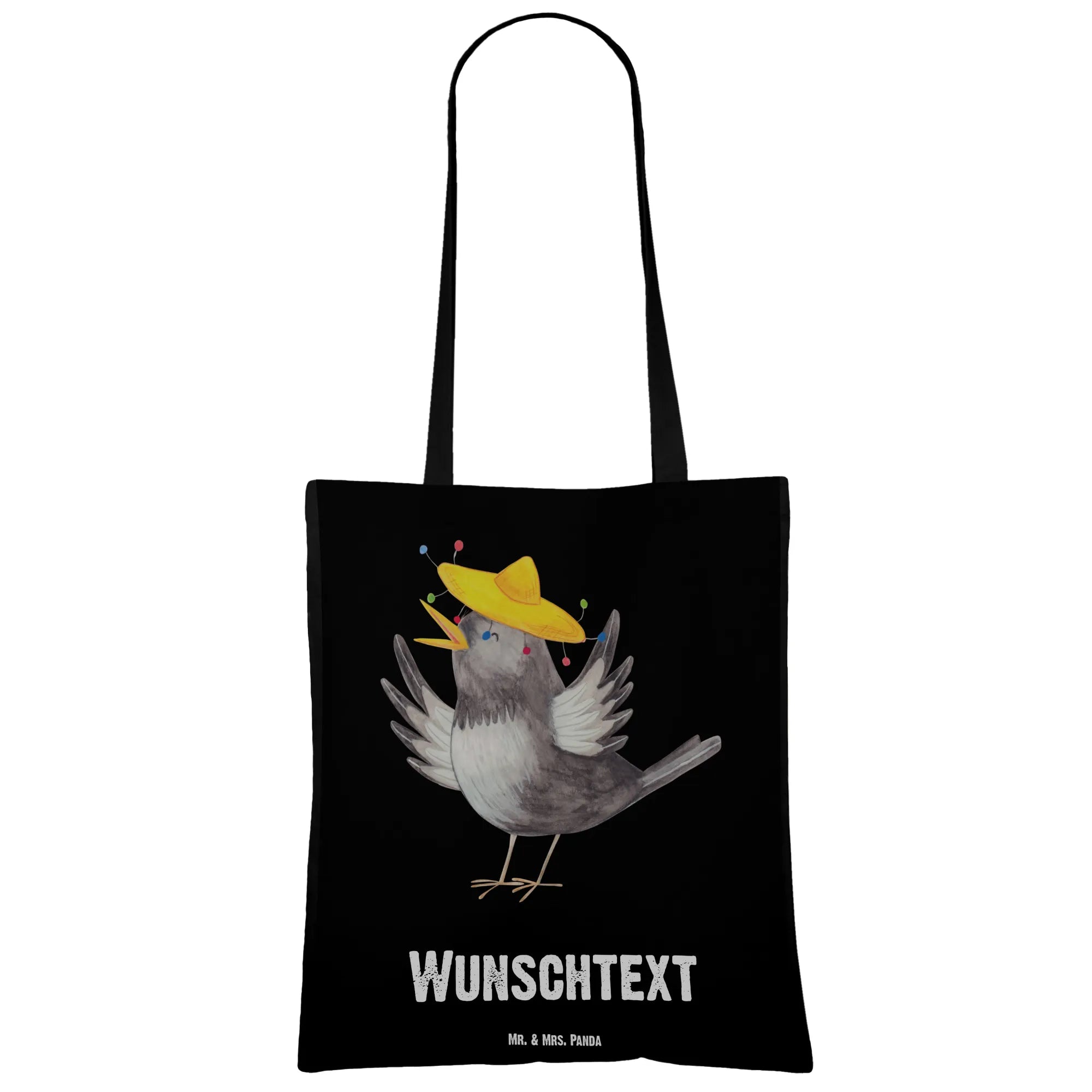 Suchst du das perfekte Geschenk für einen lieben Menschen? Unsere personalisierte Tragetasche "Rabe mit Sombrero" aus der bezaubernden Small World Kollektion von Mr. & Mrs. Panda könnte genau das sein! Diese einzigartige Einkaufstasche ist nicht nur praktisch, sondern bringt auch jede Menge gute Laune mit sich. Der fröhliche Rabe in seinem lustigen Sombrero zaubert jedem ein Lächeln ins Gesicht. Mit dem inspirierenden Spruch "Ich habe heute nichts zu tun, außer fröhlich zu sein." möchtest du niemanden mehr sehen, der schlecht gelaunt ist!