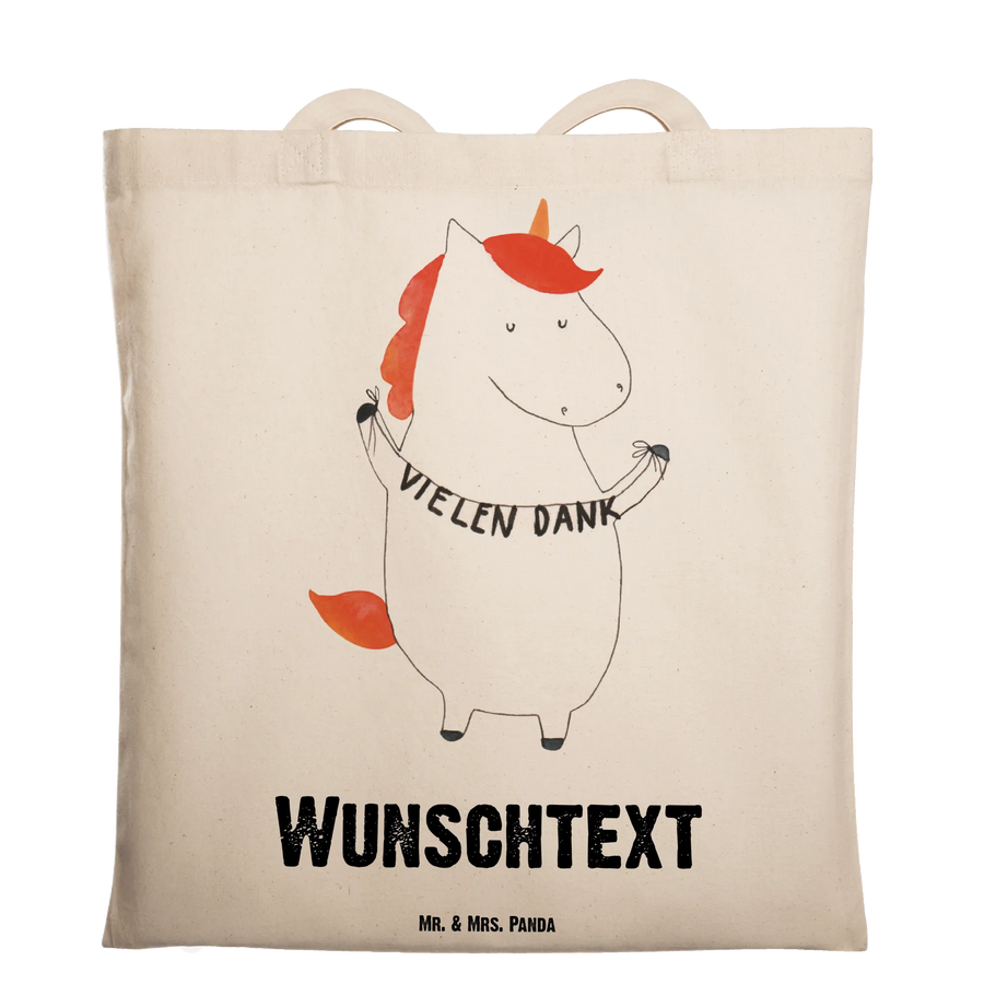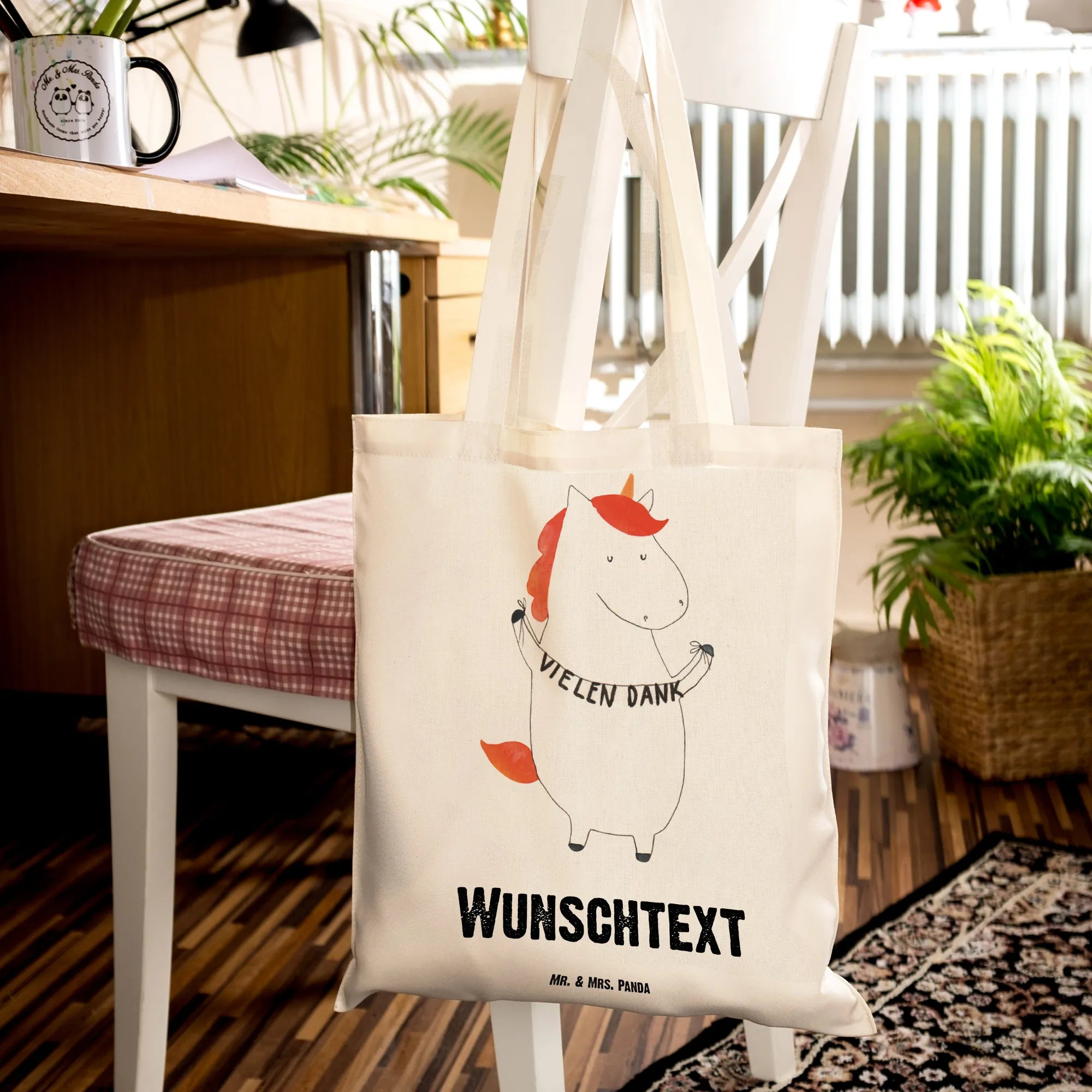 Die personalisierte Tragetasche "Einhorn Vielen Dank" von Mr. & Mrs. Panda ist nicht nur praktisch, sondern auch besonders herzlich. Sie bietet genug Platz für all deine Einkäufe oder für das Spielzeug deiner Lieblinge. Mit einem niedlichen Einhorn, das mit einer Girlande in der Hand bezaubert, ist diese Tasche das perfekte Geschenk, um sich bei jemandem für etwas ganz Besonderes zu bedanken. Egal ob für deine beste Freundin, die Unterstützung in schweren Zeiten bietet, oder als Dankeschön für tolle Nachbarn, diese Tragetasche wird sicherlich ein Lächeln auf jedes Gesicht zaubern.