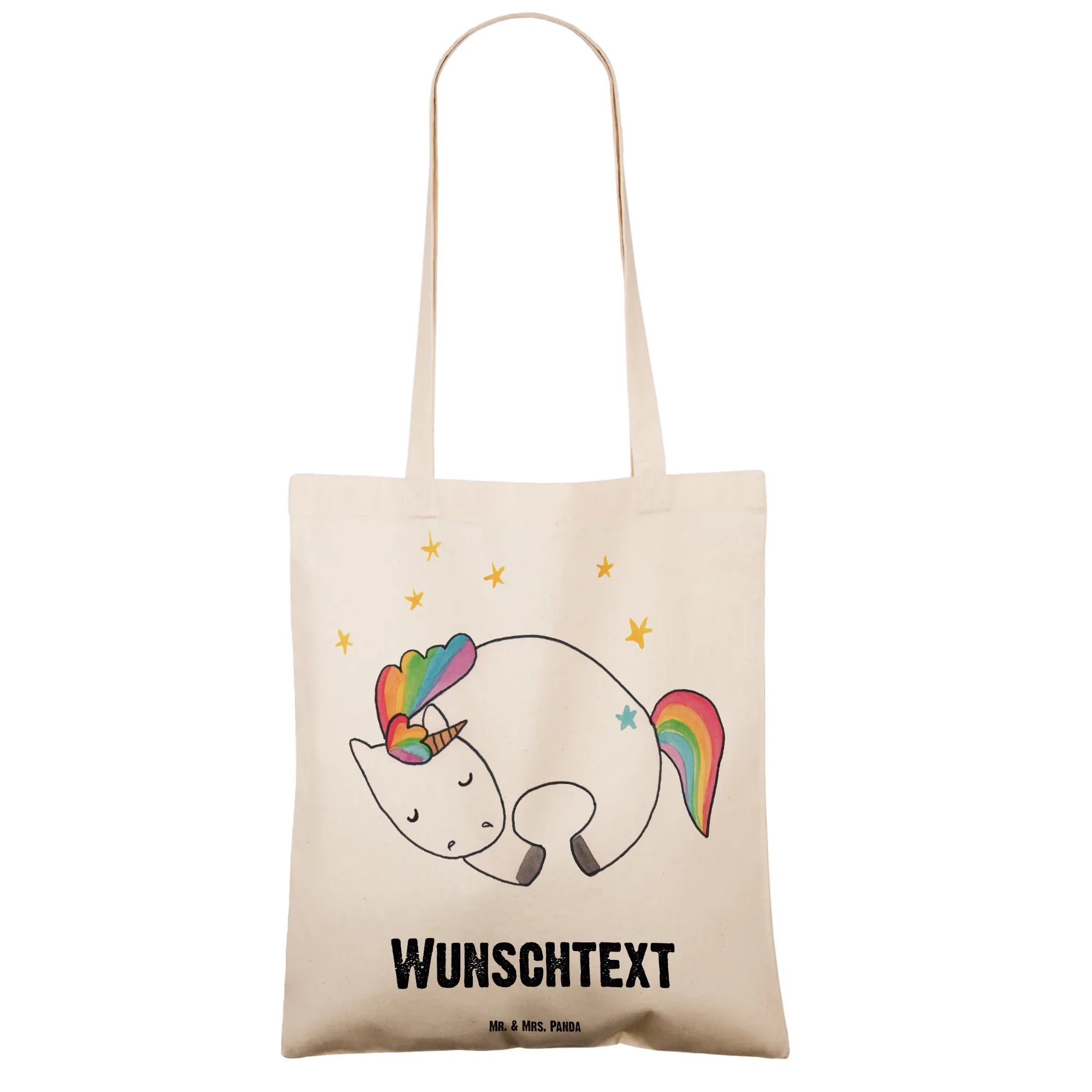 Die personalisierte Tragetasche "Einhorn Nacht" von Mr. & Mrs. Panda ist das perfekte Geschenk für alle Einhornliebhaber und Traumtänzer. Mit ihrem zauberhaften Design, das ein schlafendes Einhorn unter einem Sternenhimmel zeigt, entführt sie in eine Welt voller Magie und Träume. Diese Tragetasche ist nicht nur schön, sondern auch praktisch – hergestellt aus 100% hochwertiger Baumwolle mit einer Grammatur von 140 g/m², ist sie robust und gleichzeitig leicht. Die langen Tragegriffe von 70 cm bieten einen bequemen Tragekomfort, egal ob beim Einkaufen, im Beruf oder im Alltag.