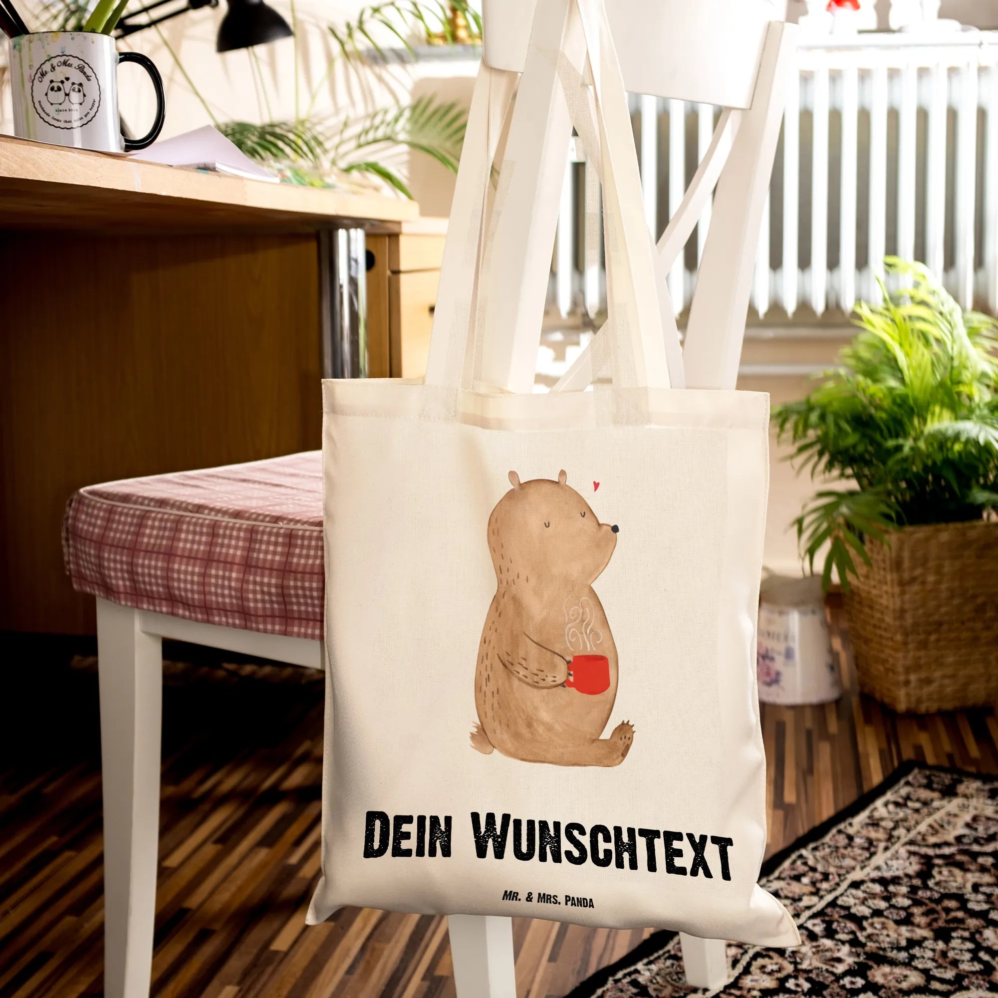 Die personalisierte Tragetasche 'Bär Morgenkaffee' von Mr. & Mrs. Panda ist das perfekte Geschenk für jeden, der das Besondere liebt. Mit einem wunderschönen, handgemalten Motiv eines entspannten Bären, der seinen Kaffee genießt, bringt diese Tasche Freude in den Alltag. Der Slogan 'Ich liebe dich mehr, als Kaffee am Morgen. Und das will was heißen.' trifft das Herz und ist eine liebevolle Botschaft an deine/n Partner/in.