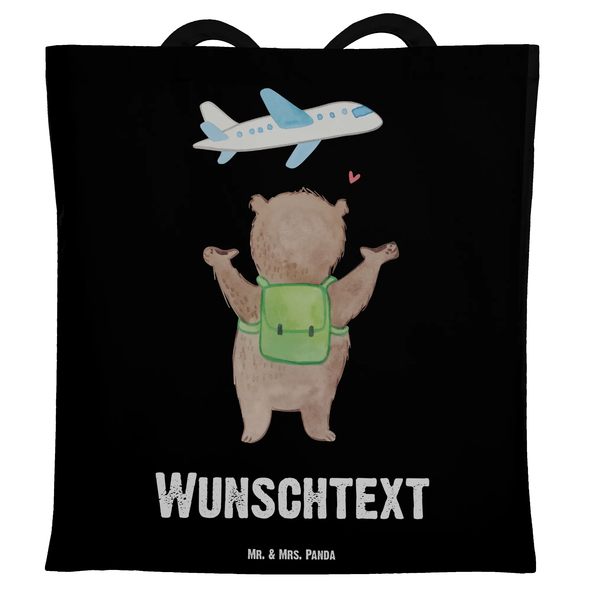 Die Tragetasche ist nicht nur stylisch, sondern auch personalisierbar: Füge einfach den Namen oder Wunschtext Deines Lieblings hinzu und mach das Geschenk zu etwas ganz Besonderem. Die hochwertigen Materialien und das süße Motiv mit dem Bären und dem Flugzeug strahlen Freude und Reisebegeisterung aus. Der Bär breitet seine Arme weit aus und zeigt, dass er bereit ist, mit Dir die Welt zu erkunden!